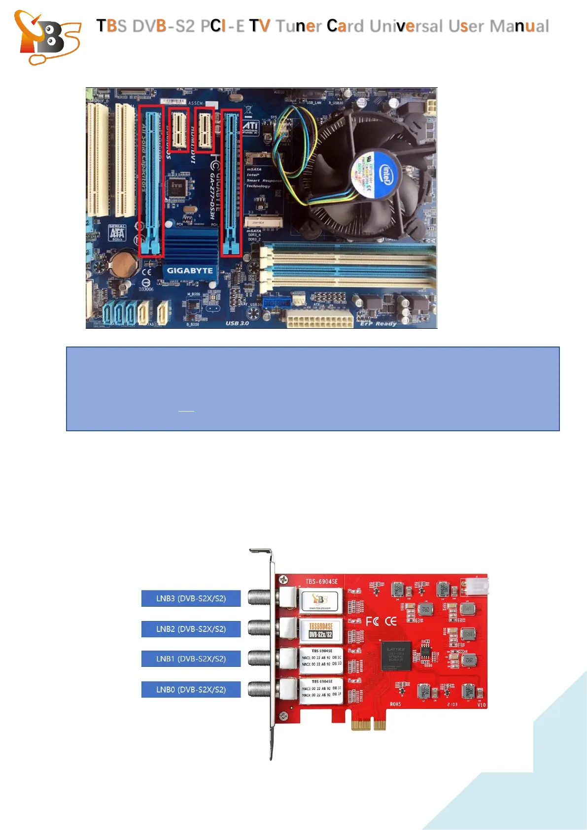 TBS DVB-S2 PCI-E TV Tuner Card Universal User Manual