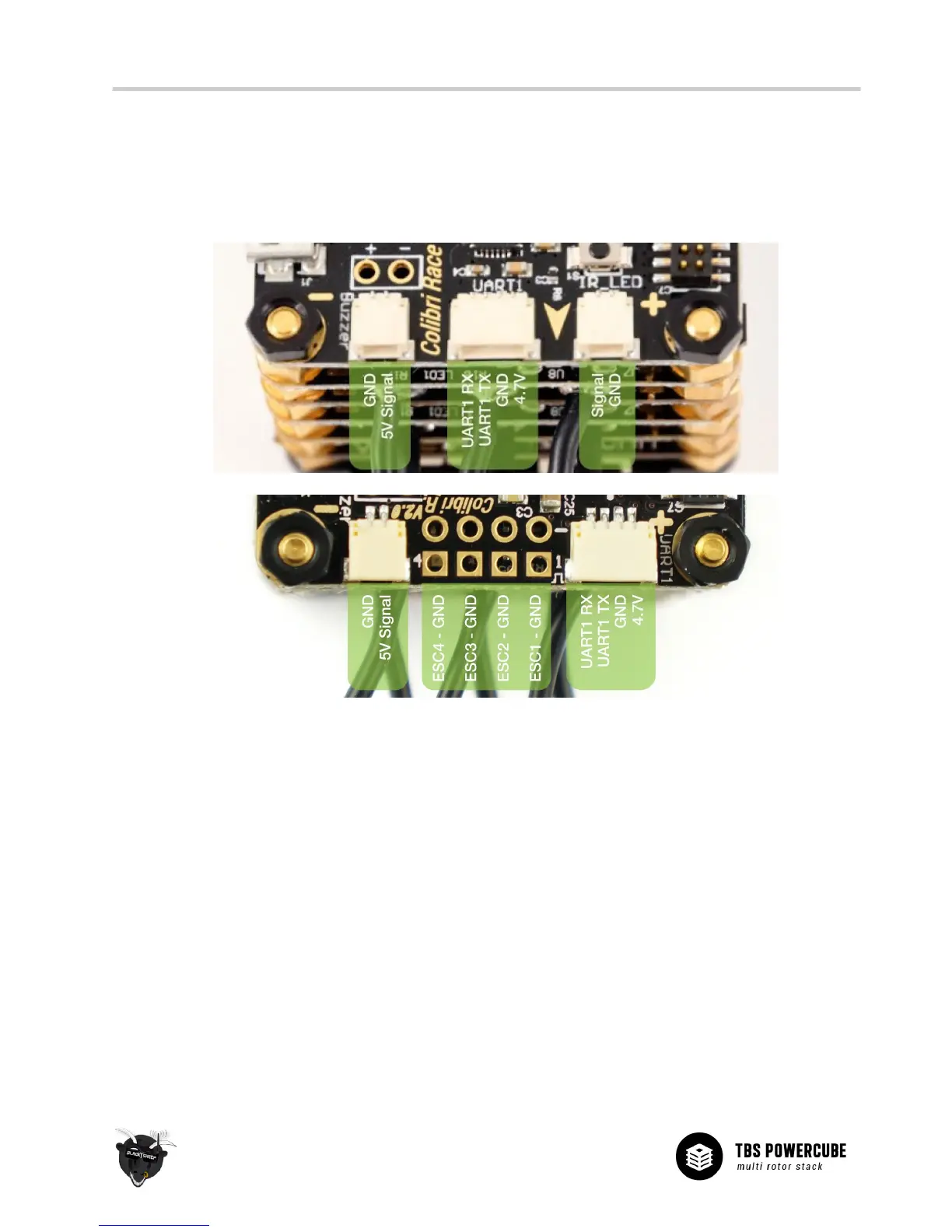 An overview of all the ports provided by the COLIBRI RACE flight controller is shown in the illustration below.