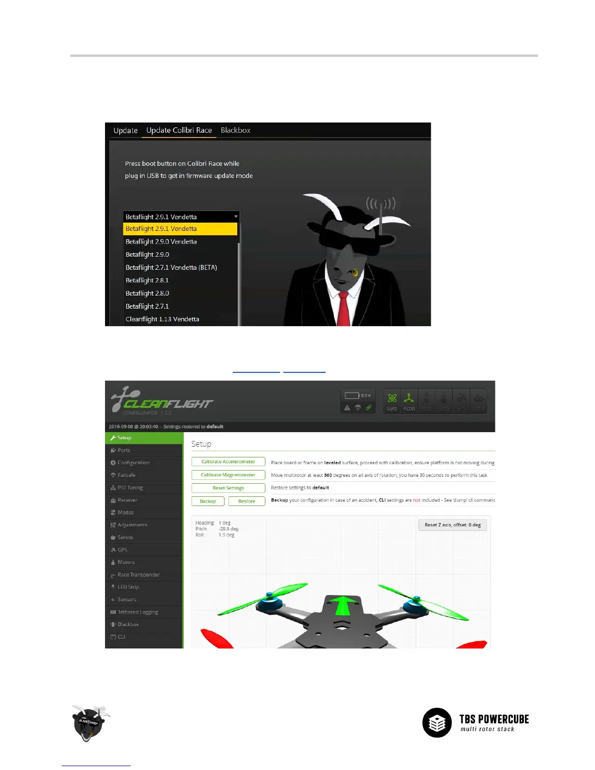 4. Select a firmware from the drop-down menu (select “Vendetta” especially made for the TBS
