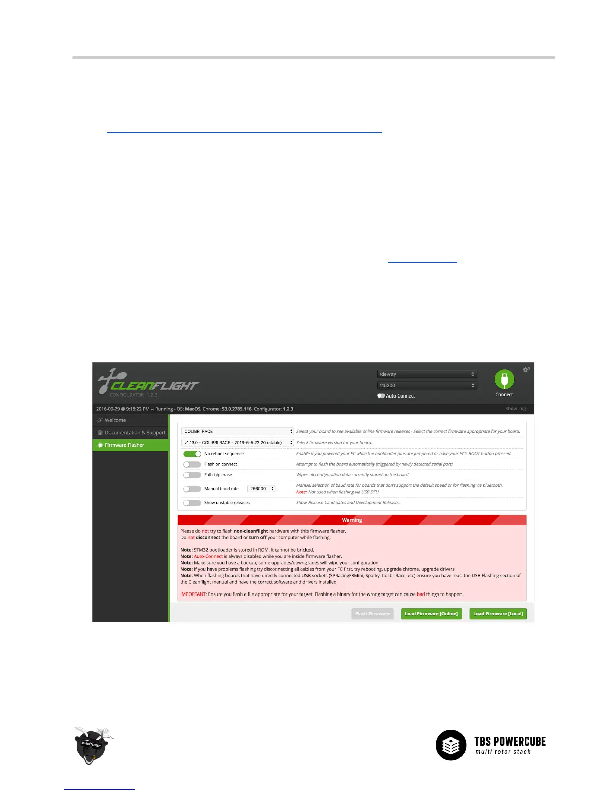 CleanFlight firmware, then click “Flash Firmware” begin the programming process.
