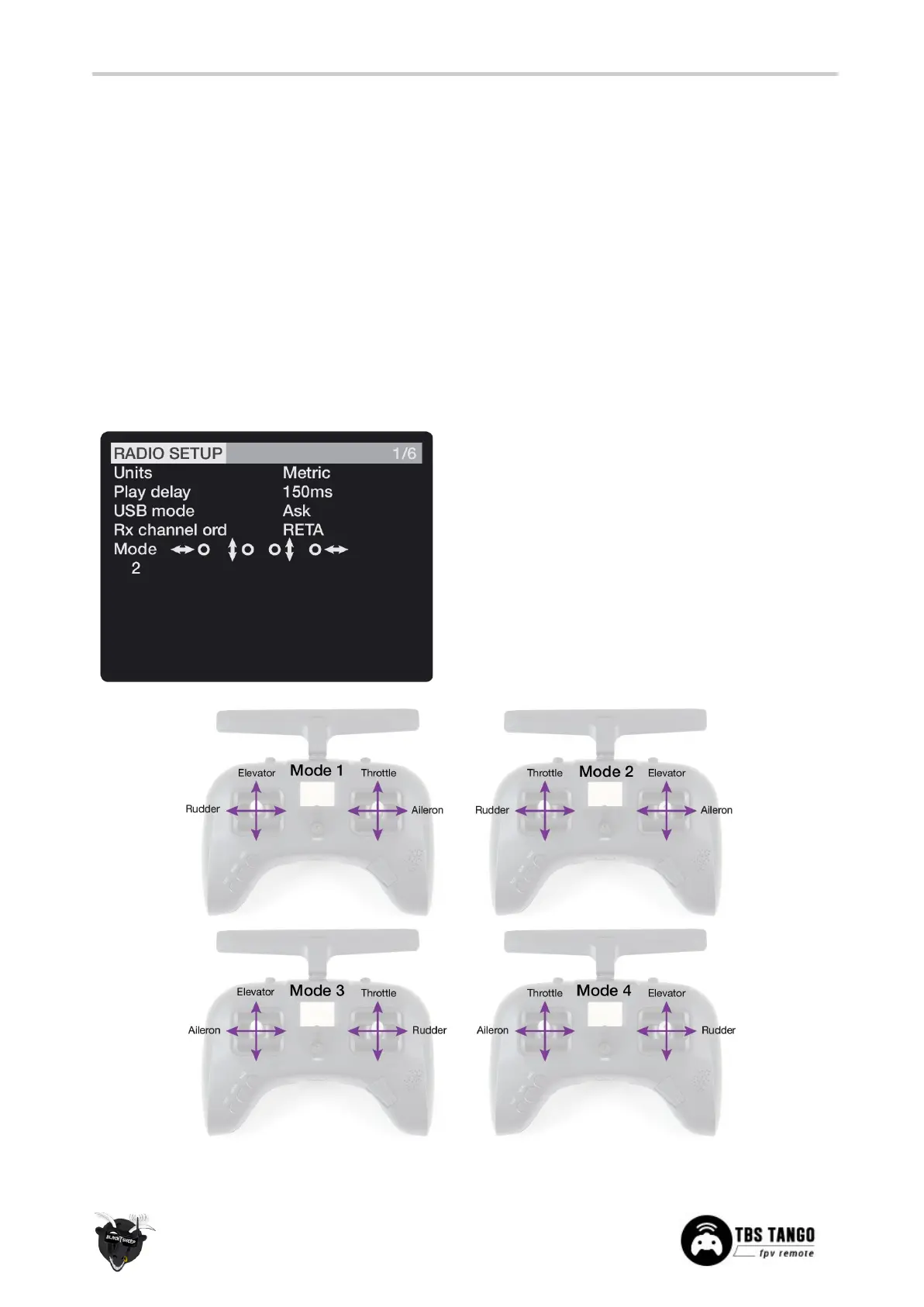By default the remote is set up with Mode 2, which is the most common type used.