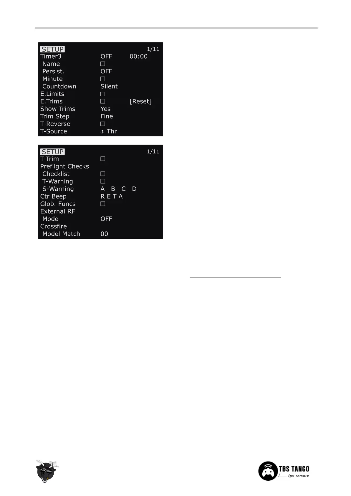 ● Show trims - Display trims on main screen