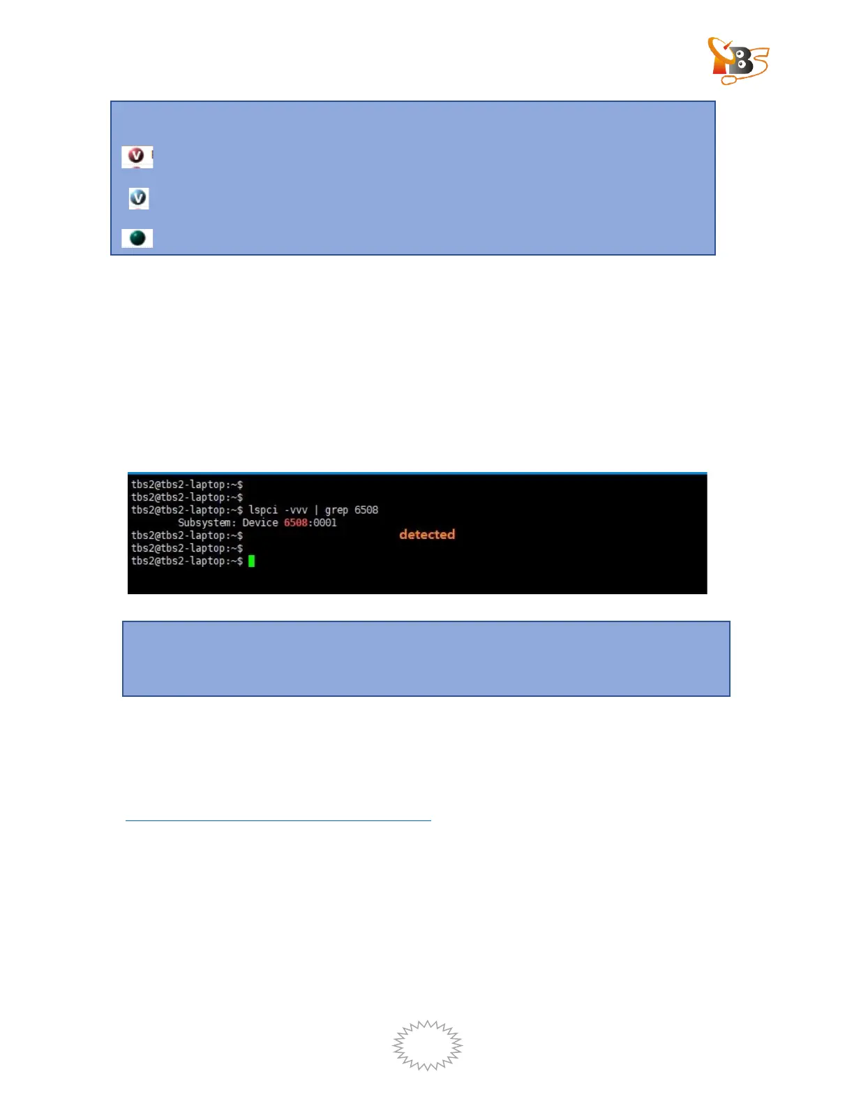 Install your TBS6508 into a PCI-E slot , turn on the PC , run the command “6508 #