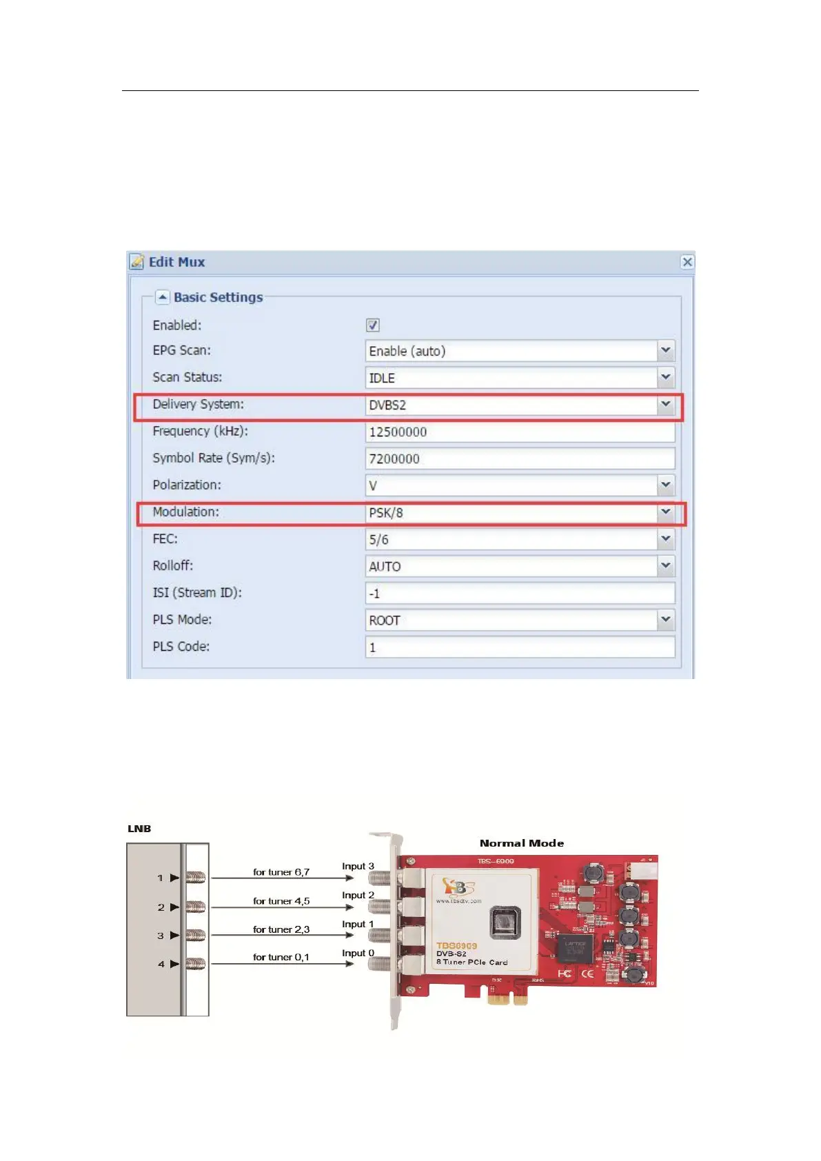 input for two tuners, two tuner use the same satellite, you can do it like this: