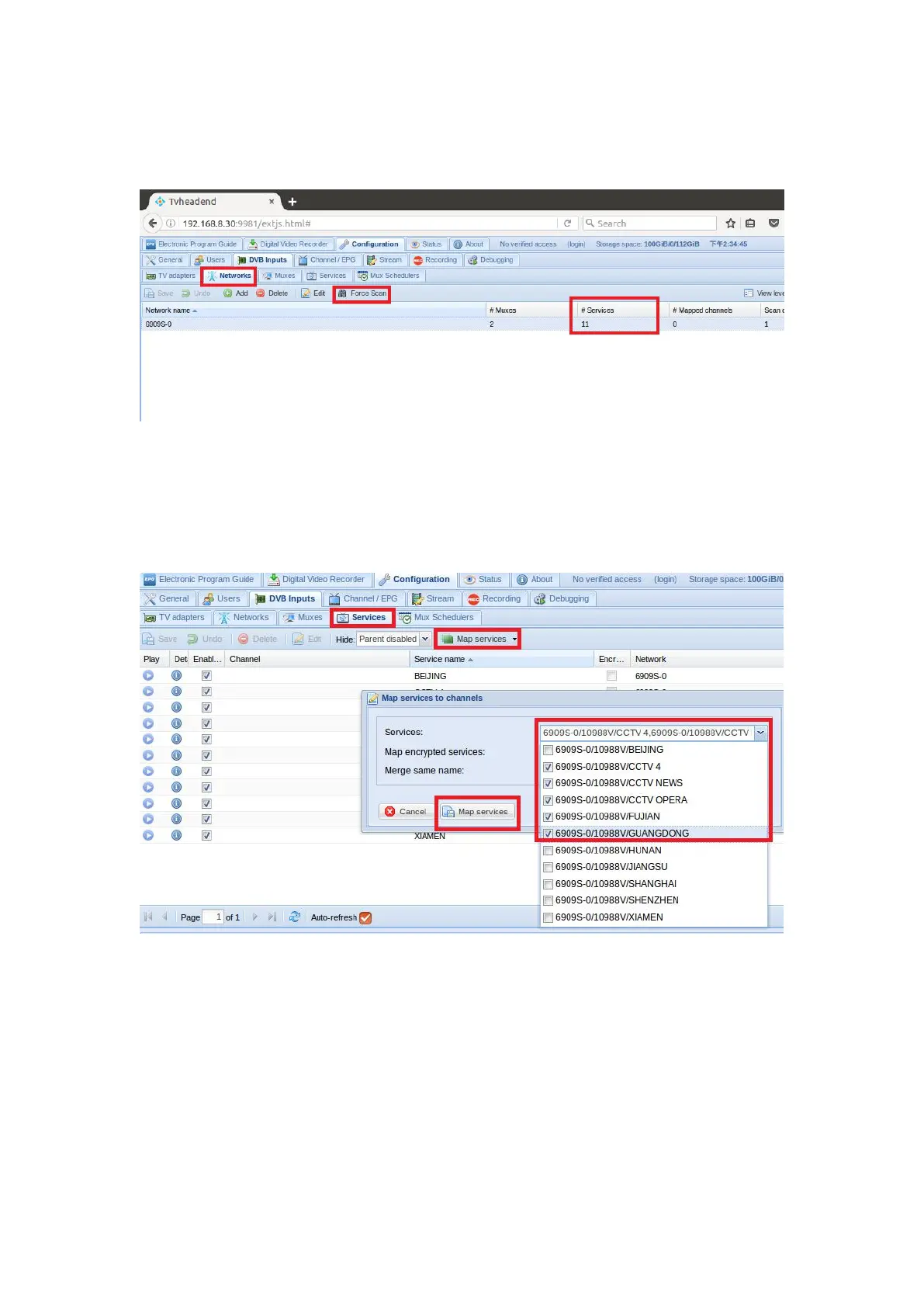 7.10 Log in “Networks” and then click “Force Scan” to lock TV channels. ( See