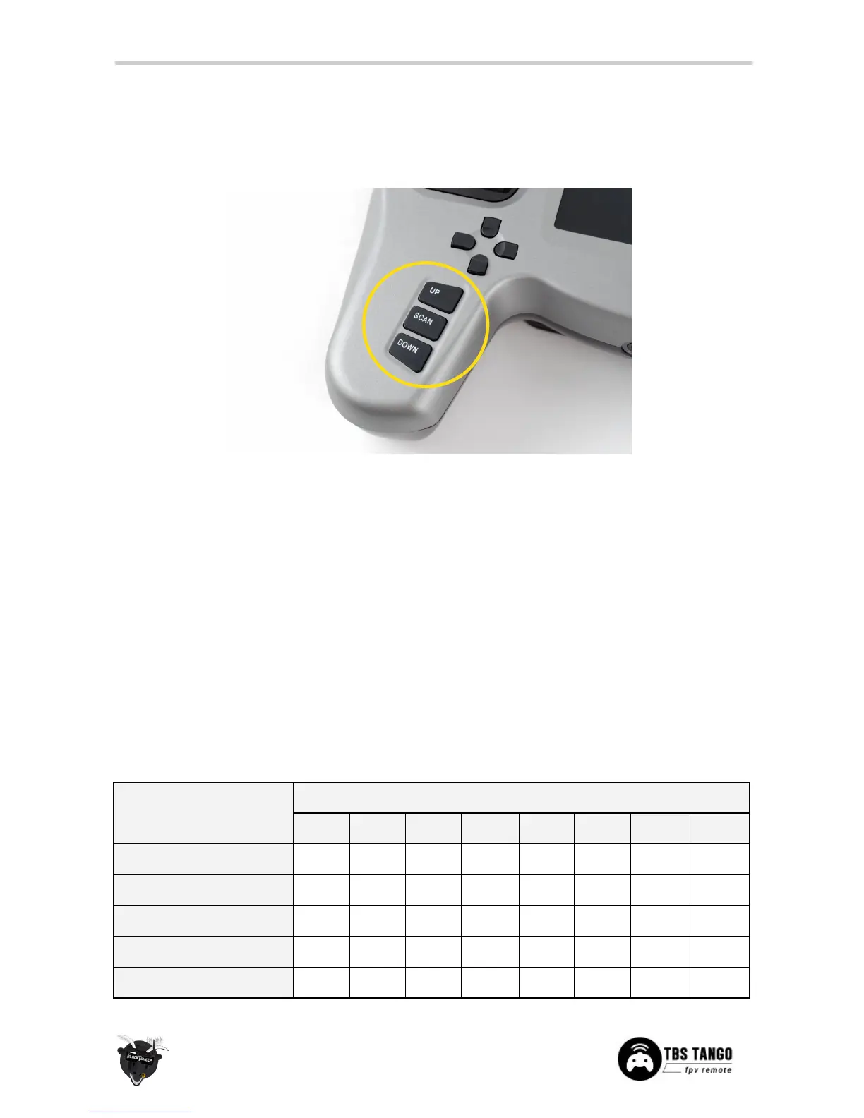 • Short press - Jump to the next video RX channel, sequence Band A Band B Band E Airwave→ → →