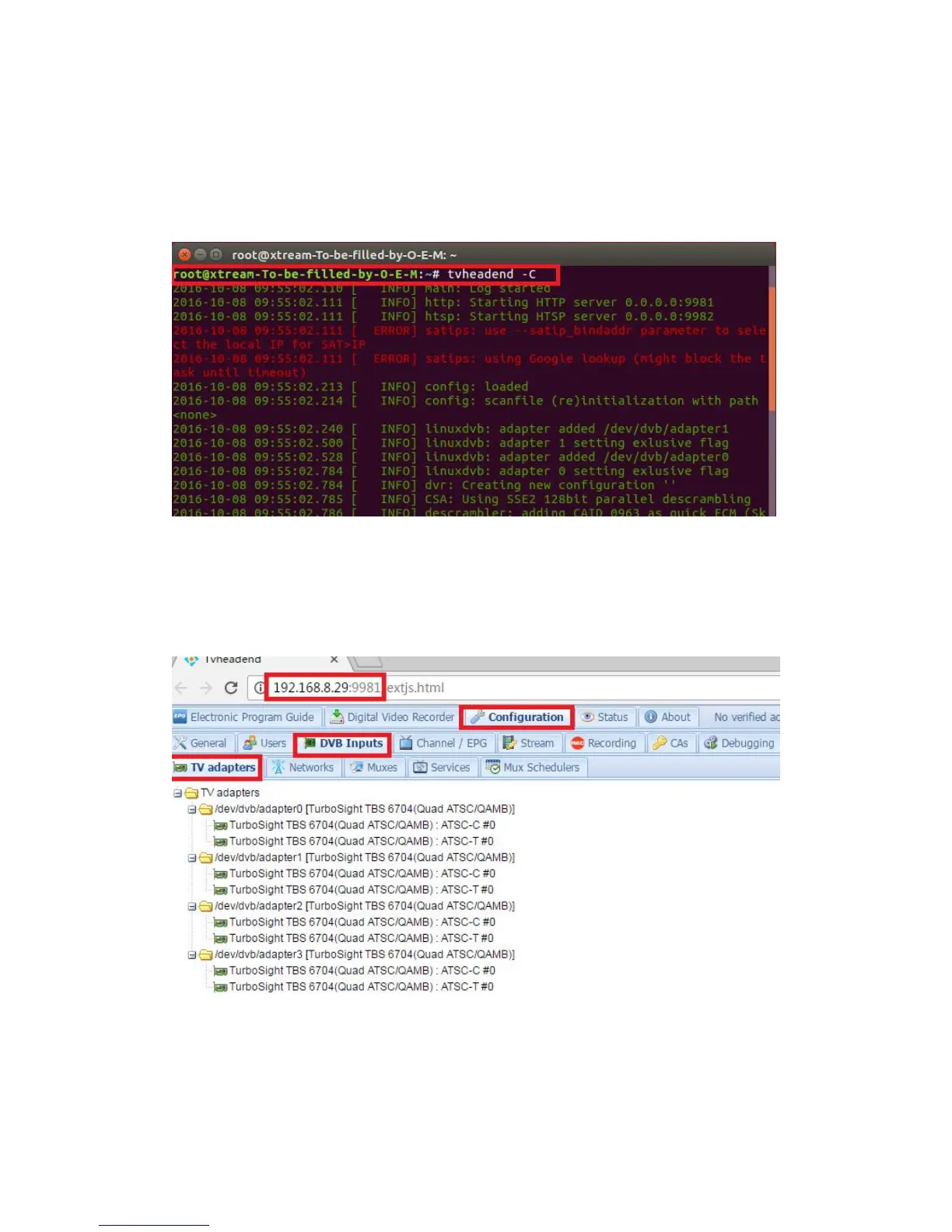 as below, then you can log in tvheadend configuration webui. (See the following