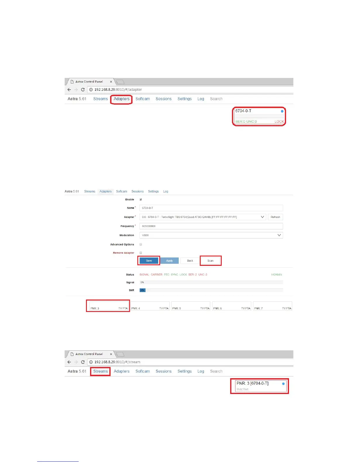 7.5 Log in “Adapters” again. If the LNB signal indication pops up in the window, you
