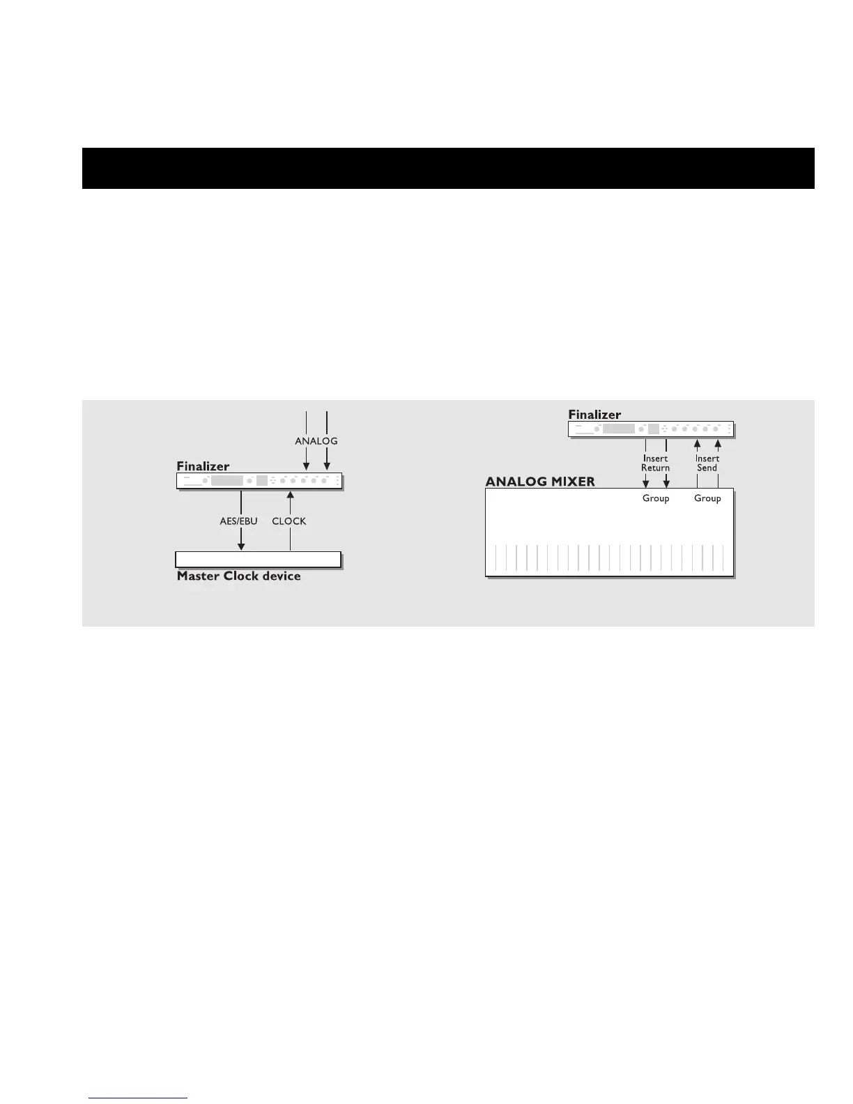 The Finalizer Express may be forced to use an incoming digital clock as master clock and still use the audio of the analog Inputs. This may