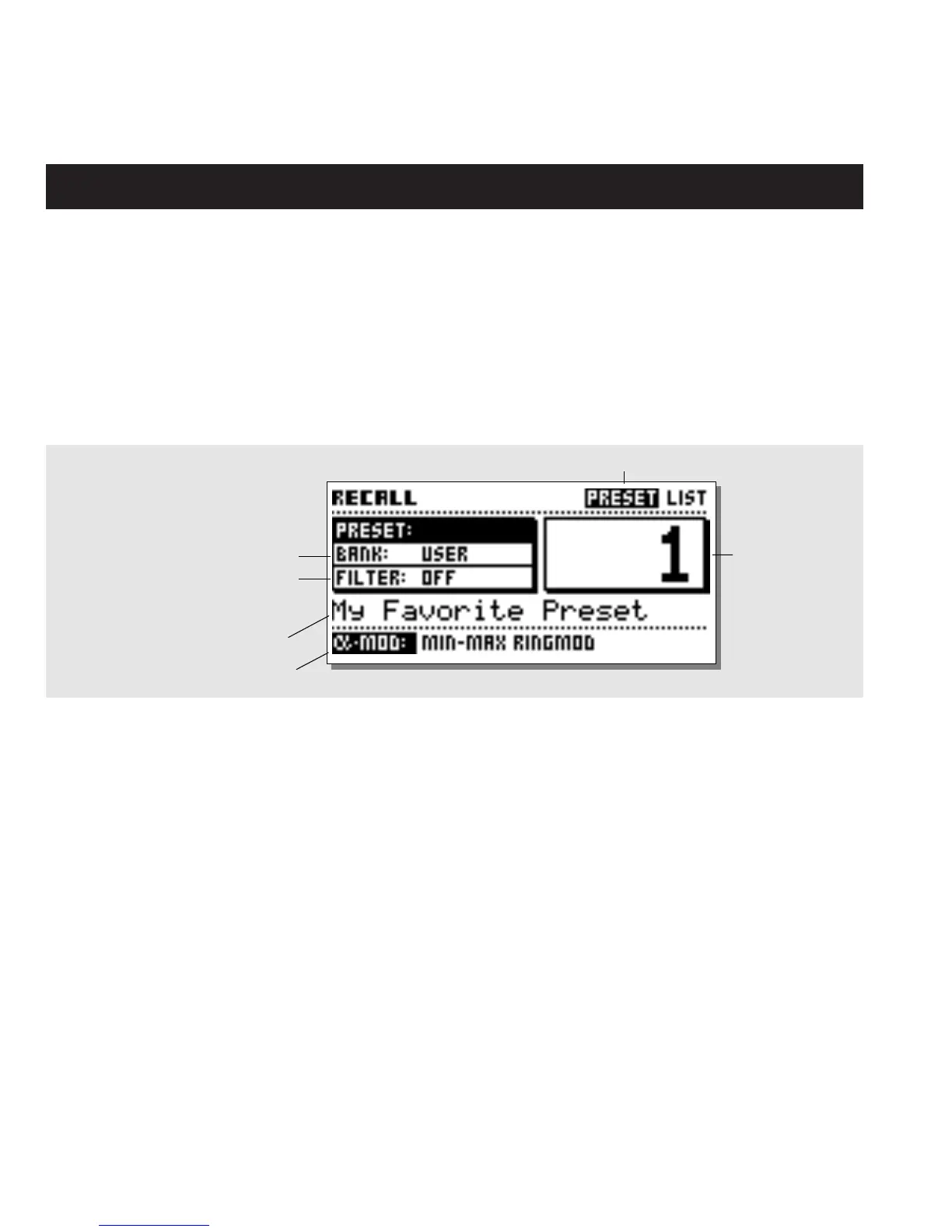 When you want to Recall a Preset, simply use the Value wheel to scroll through the Presets and press the Enter key