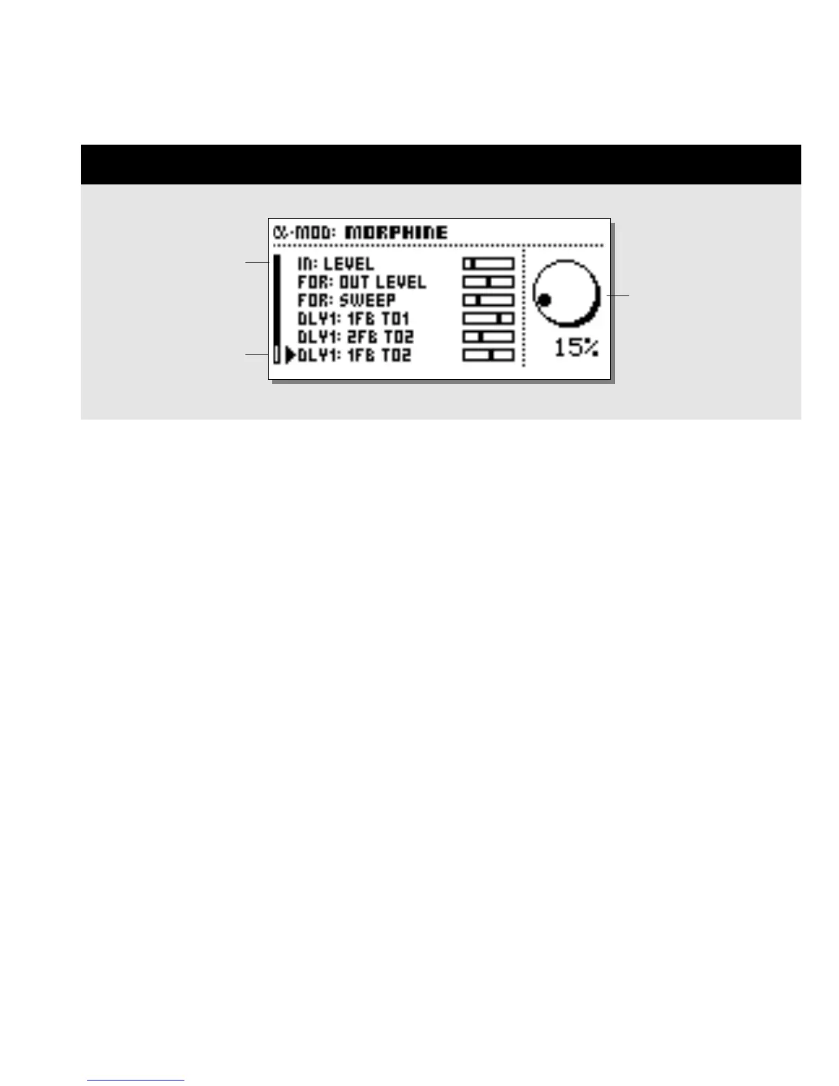by the Alpha Mod. wheel. Use the Parameter wheel to scroll