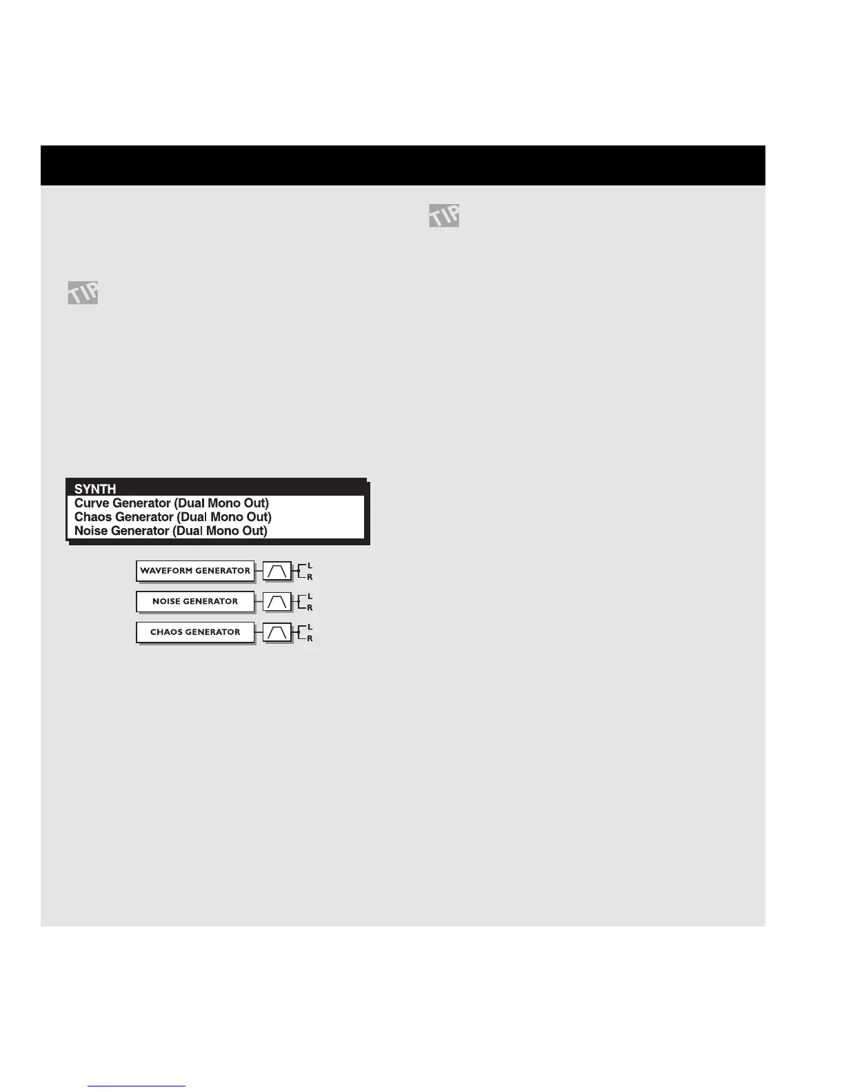 The Synth block contains three different types of generators: