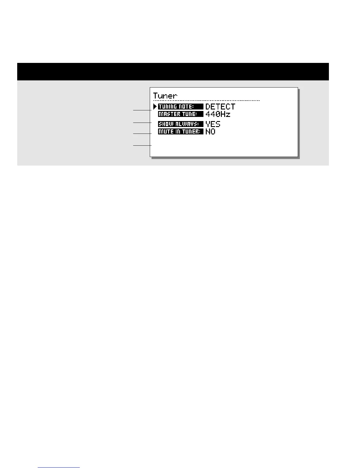 display. In the Tuner display, you have four setup