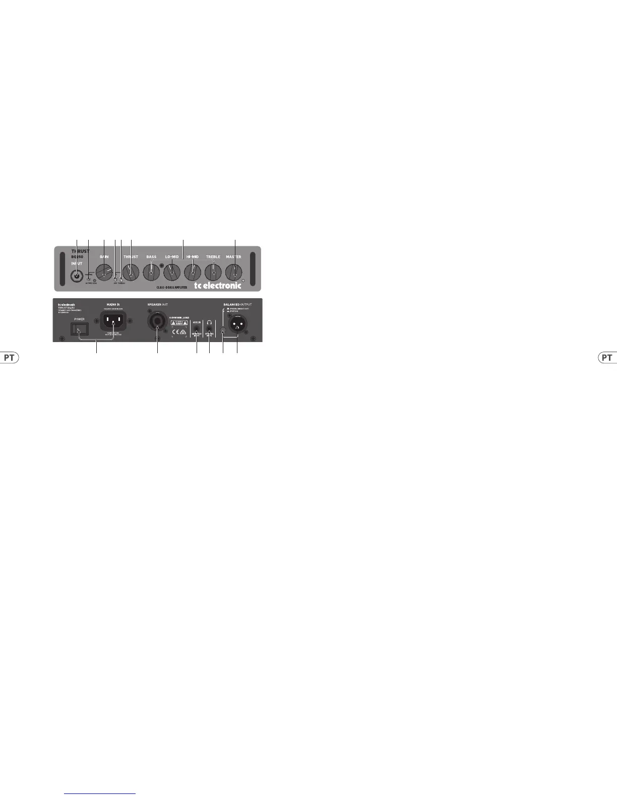 de entrada de ¼”. O estágio de entrada do seu ampli cador de baixo é