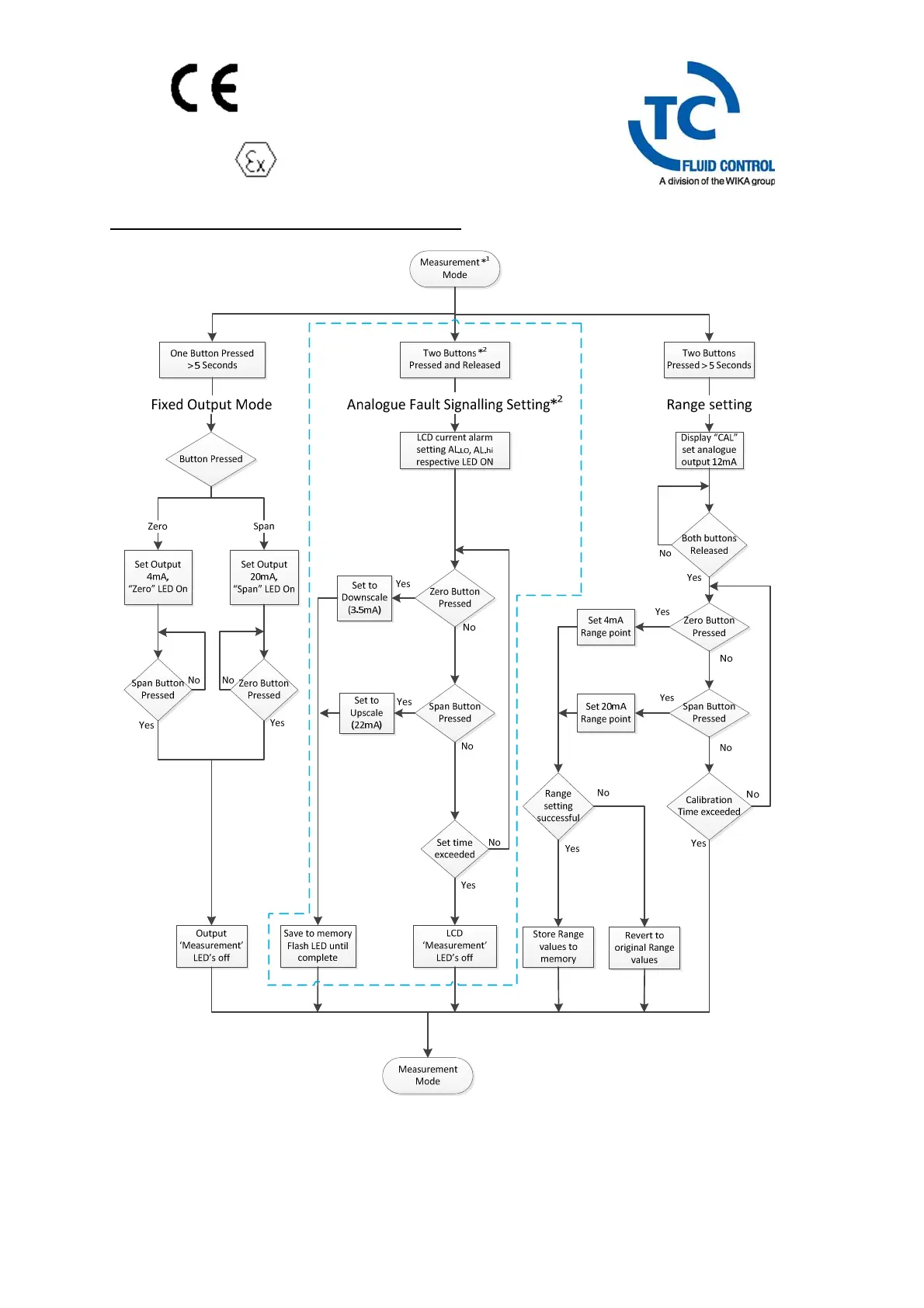 TC FLUID CONTROL KMS-2 - Transmitter Front Panel Settings Flowchart