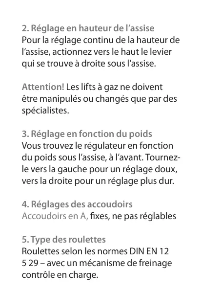 2. Réglage en hauteur de l’assise