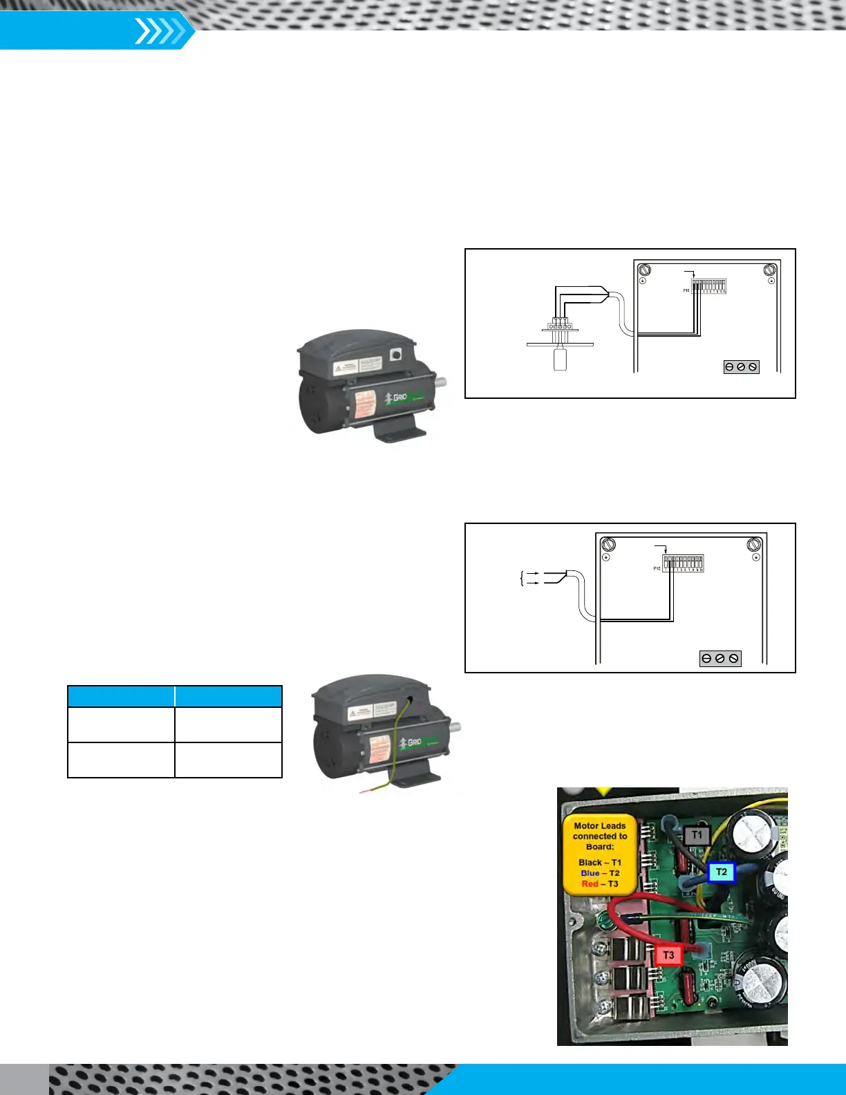 the rotation of the motor, swap the T1 (Black) and T2 (Blue) leads (as shown on