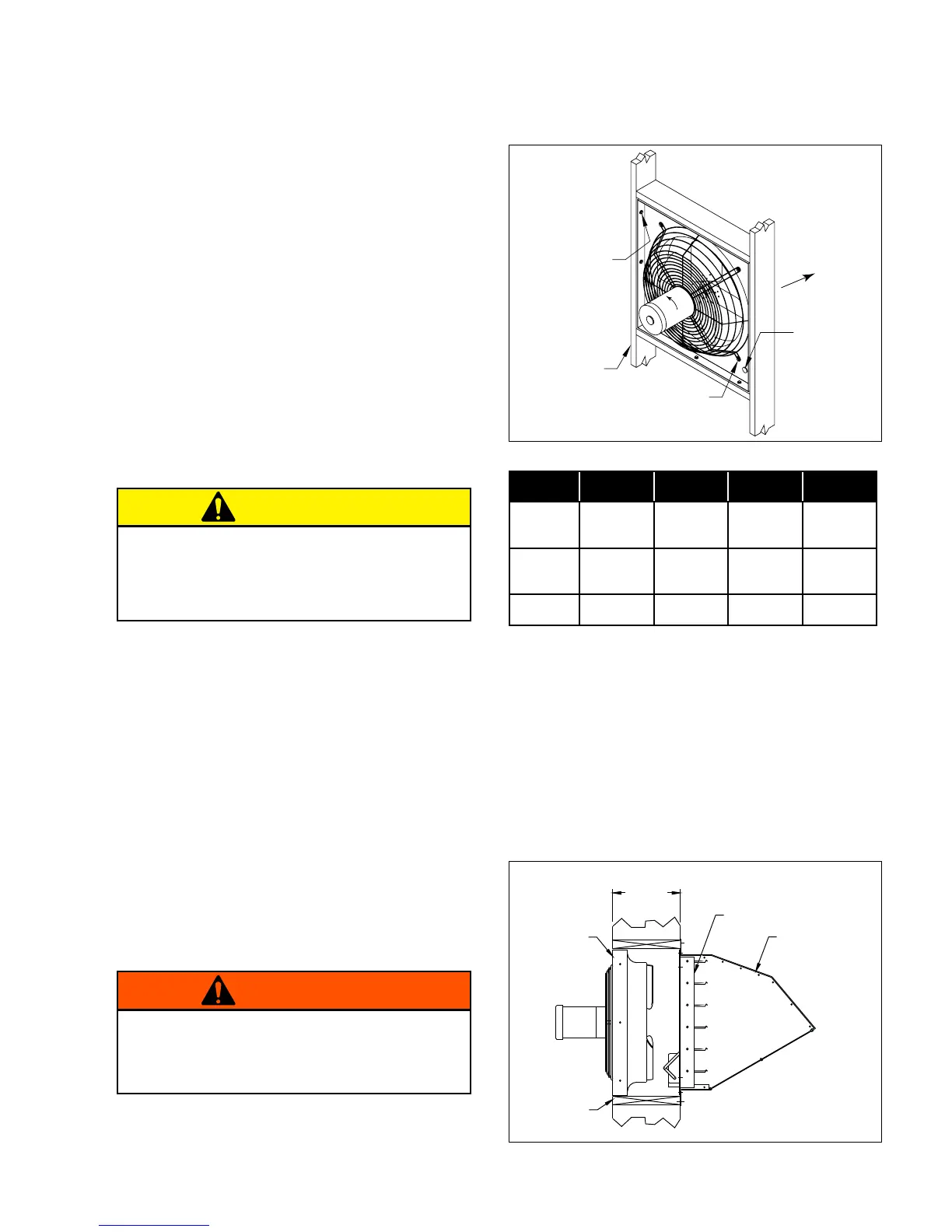 installation. Fans mounted in or to the wall require a