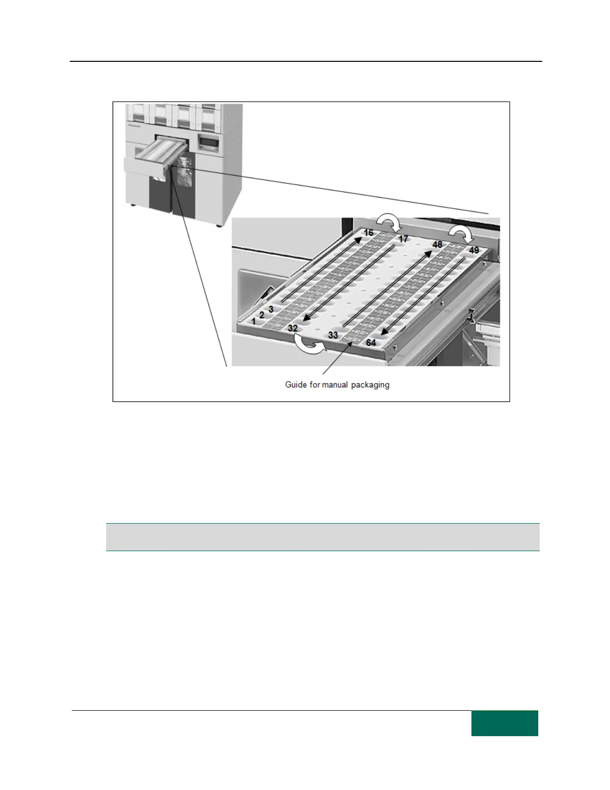 Each cell in the upper tier is provided with a light to assist in manual packaging.