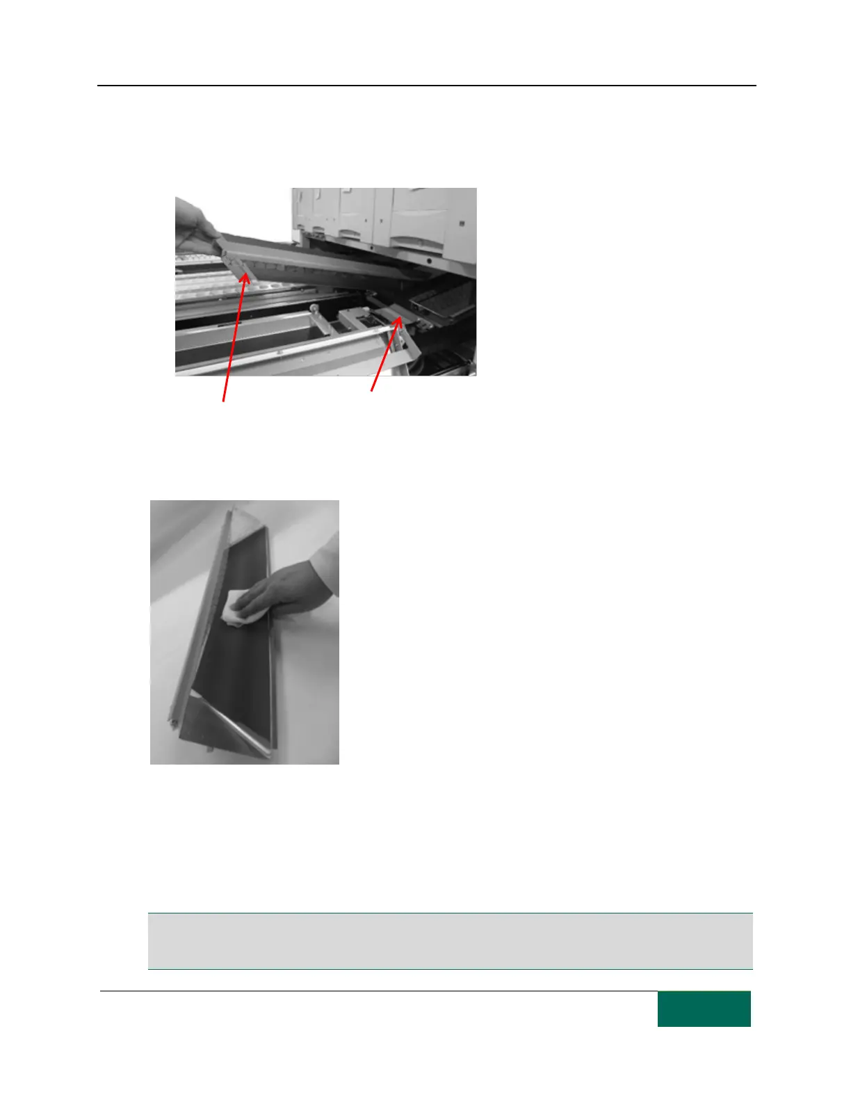 Replace the primary shutter chute in its original location. Place the cleaned sub hopper in the sub