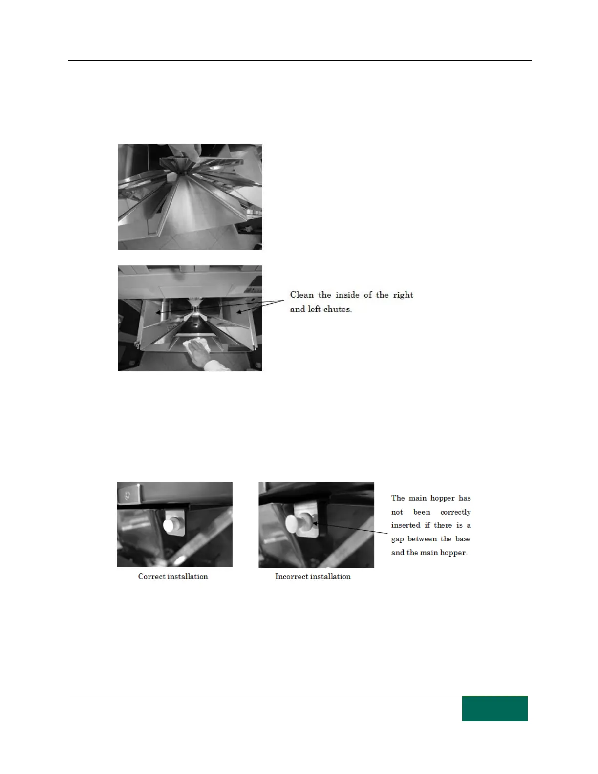 chutes are not made to be removed, but clean the inside of the chutes. Take care not to touch the parts