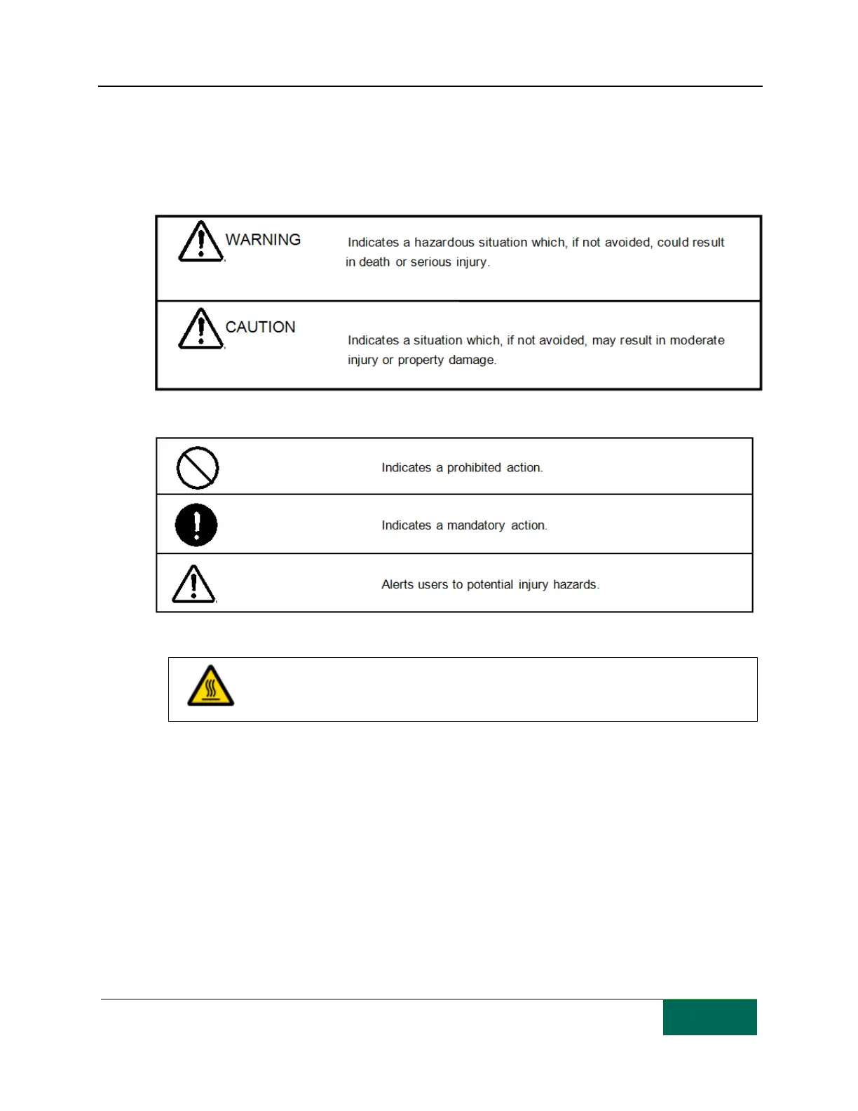 The following symbols are used to indicate instructions that must be observed.