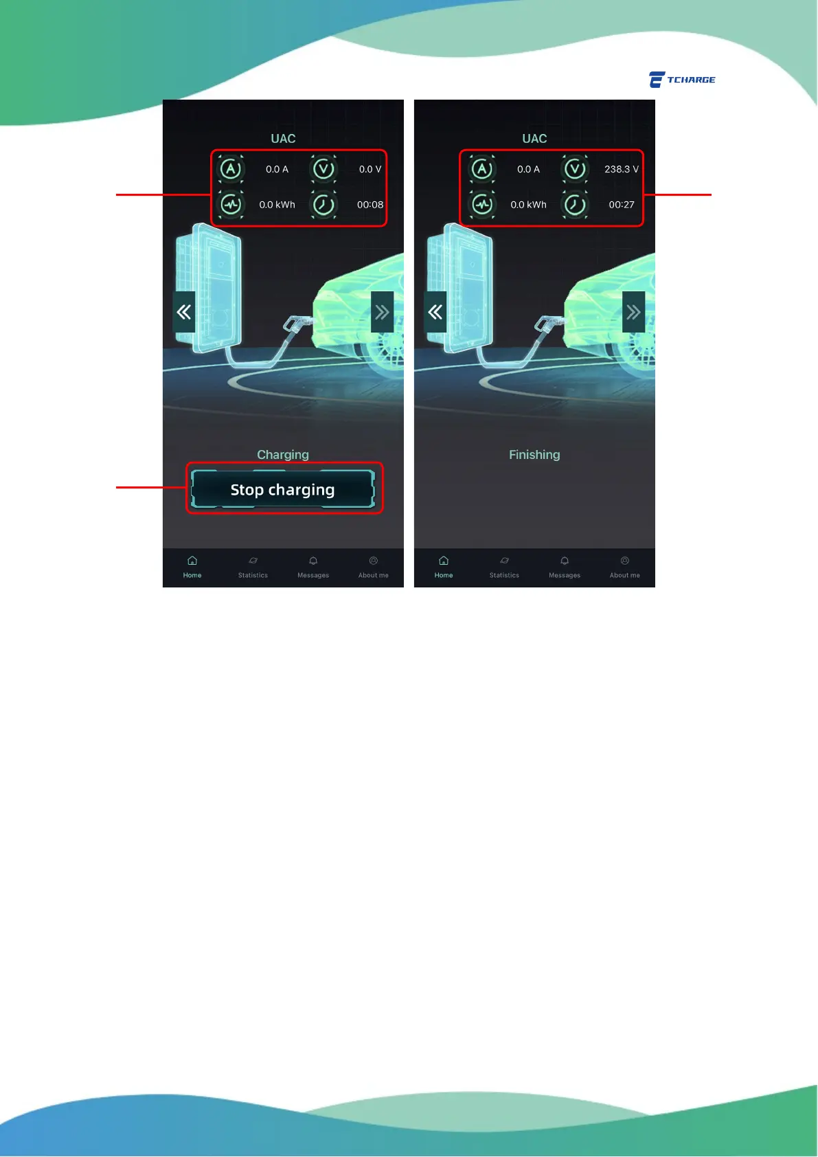 Figure 5.2 Charging In Progress Page and Finishing Charging Screen