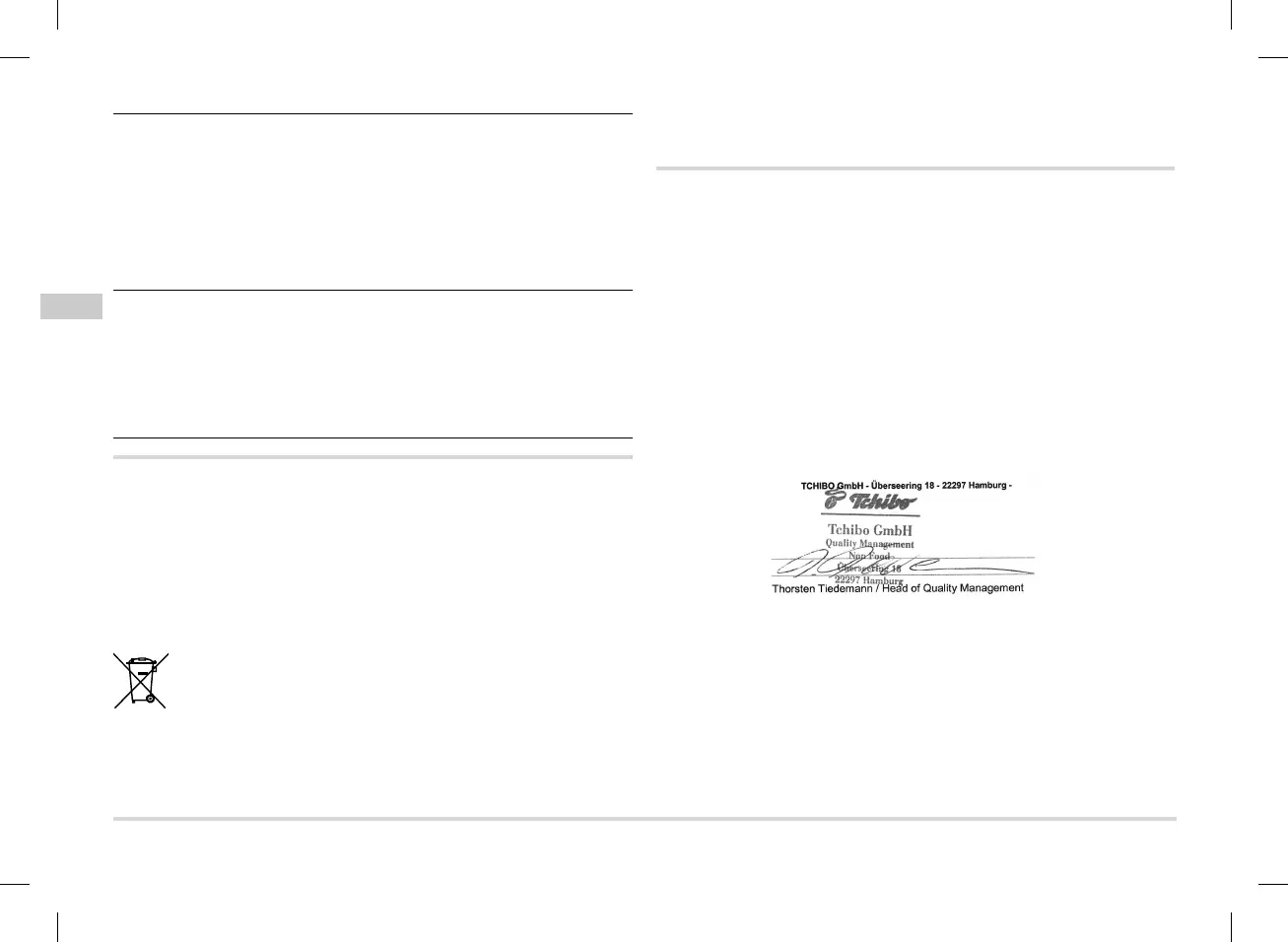 Hiermit erklärt die Tchibo GmbH, dass dieses Produkt zum Zeitpunkt des