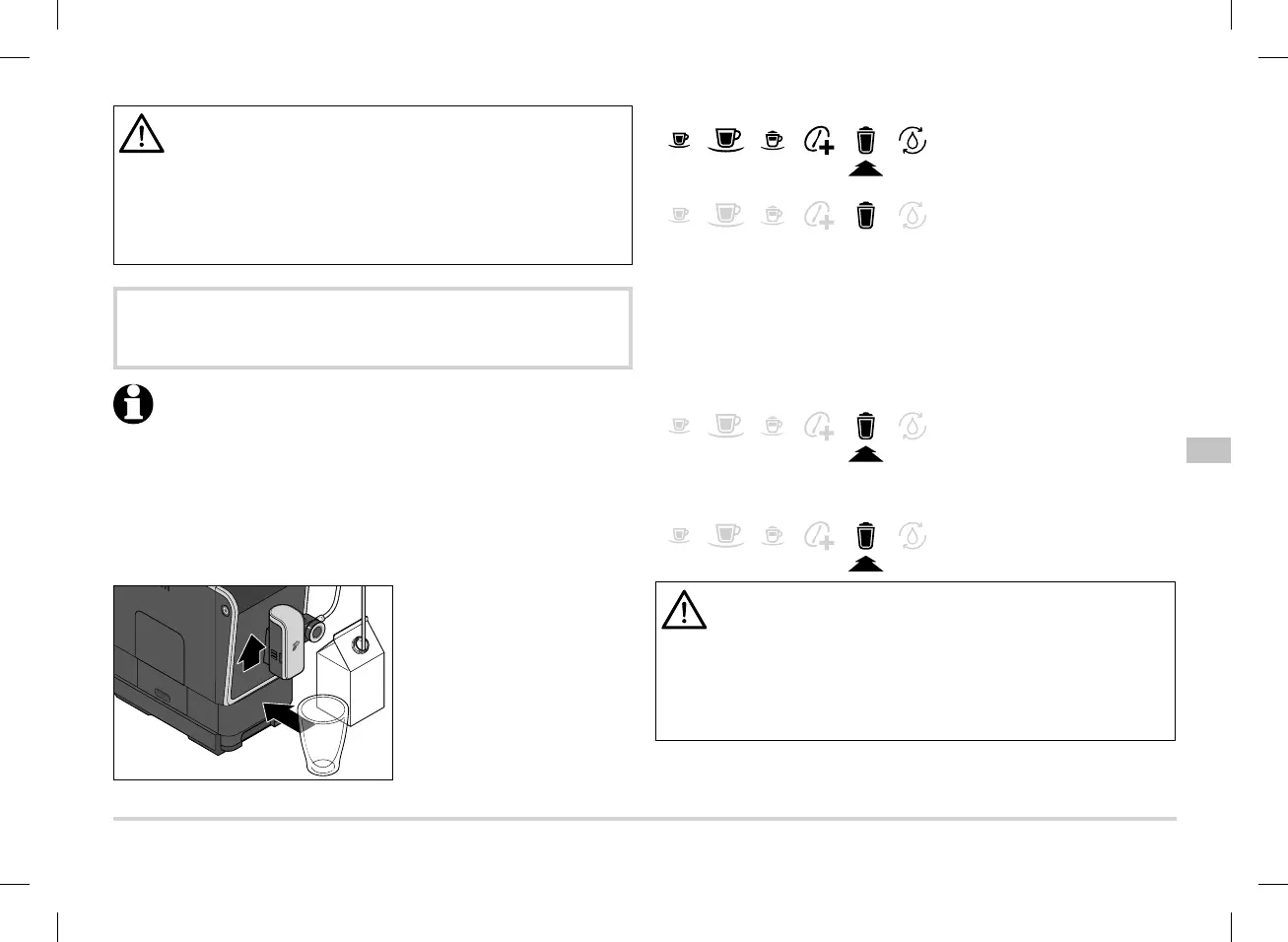 after preparing beverages with milk. See section “Rinsing the milk
