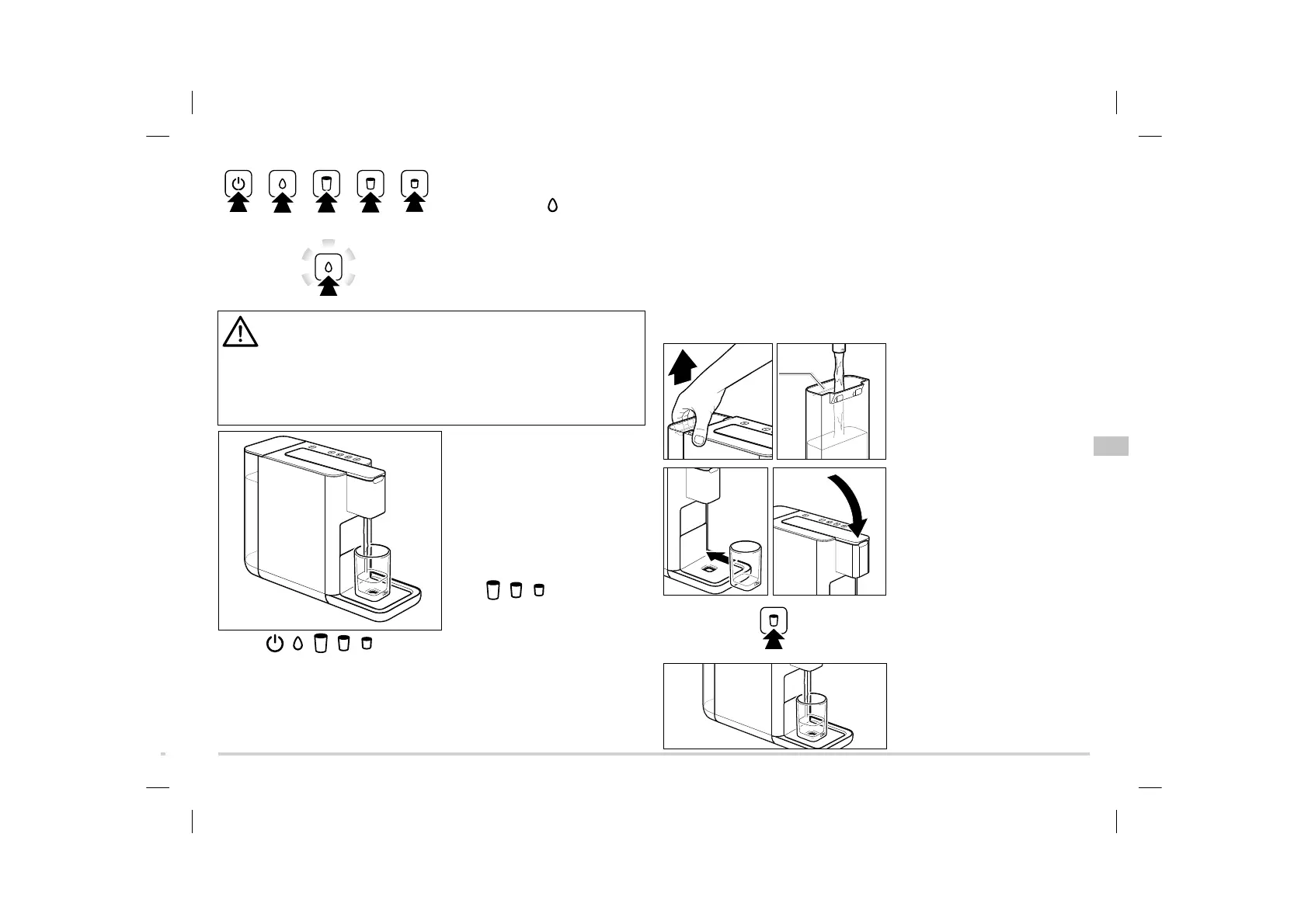 należy przepłukać ekspres, przepuszczając przez niego dwie filiżanki wody (bez