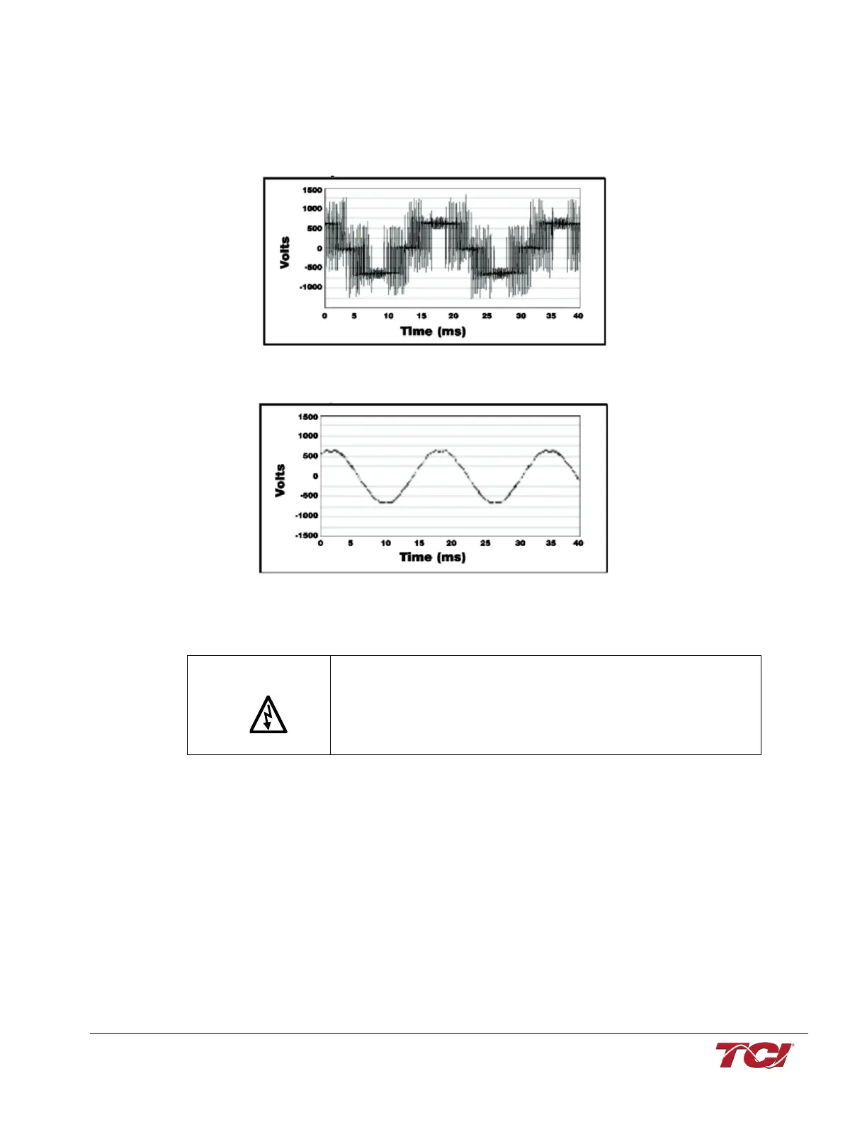 This waveform illustrates typical filter output voltage waveform when measured from line to line. If