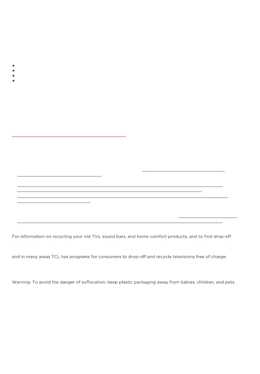 locations in your area, please visit the “Electronics Recycling” area of the TCL website at www.tcl.com.