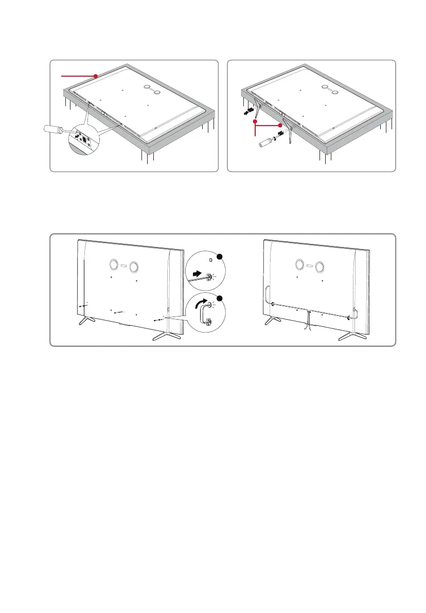 Insert the cable clips into the back of the TV and route the cables as illustrated.