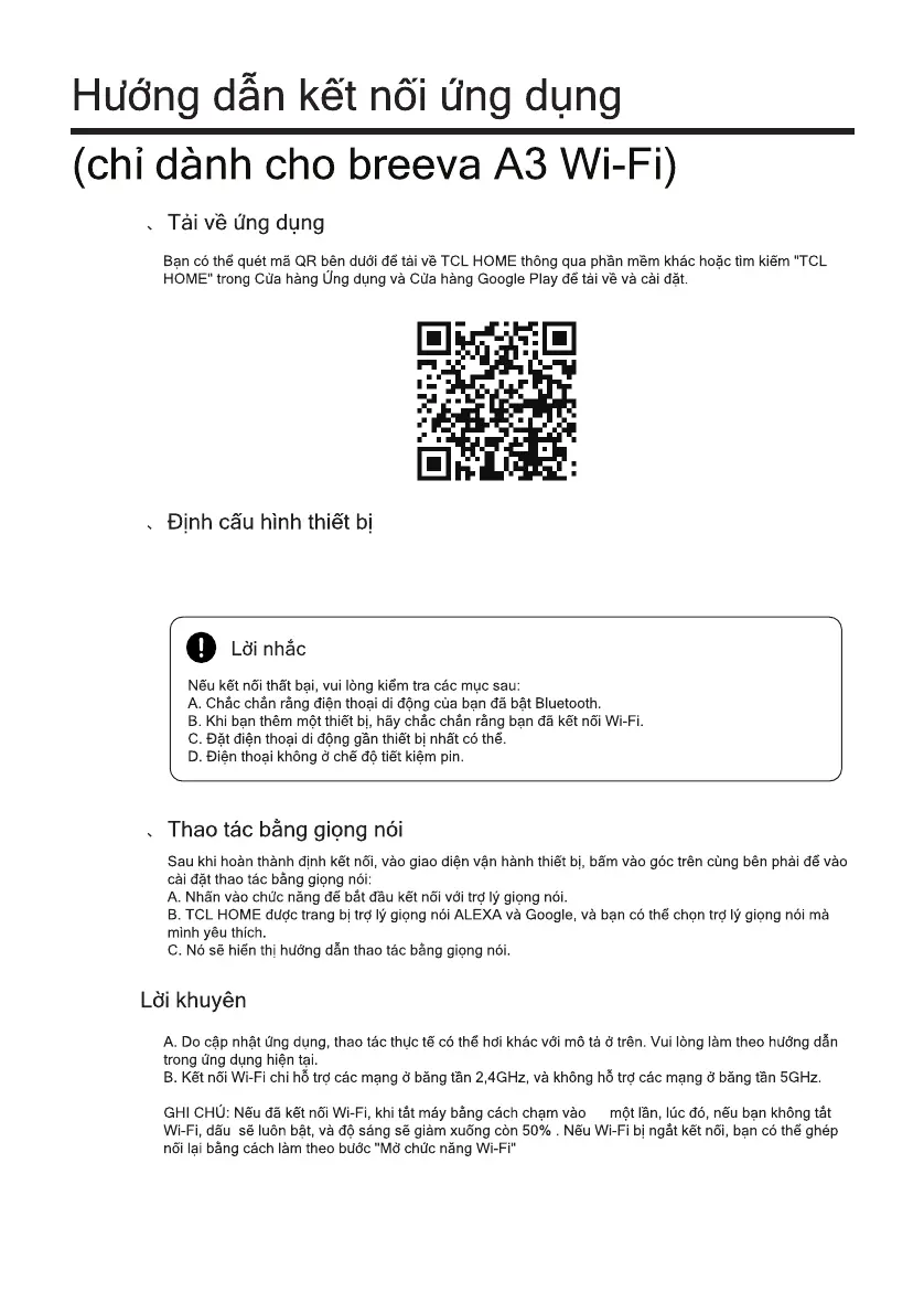 nhanh, và thiết bị sẽ chuyển sang trạng thái dò tìm wifi. Khi đèn báo Wi-Fi sáng ổn định, ứng dụng TCL