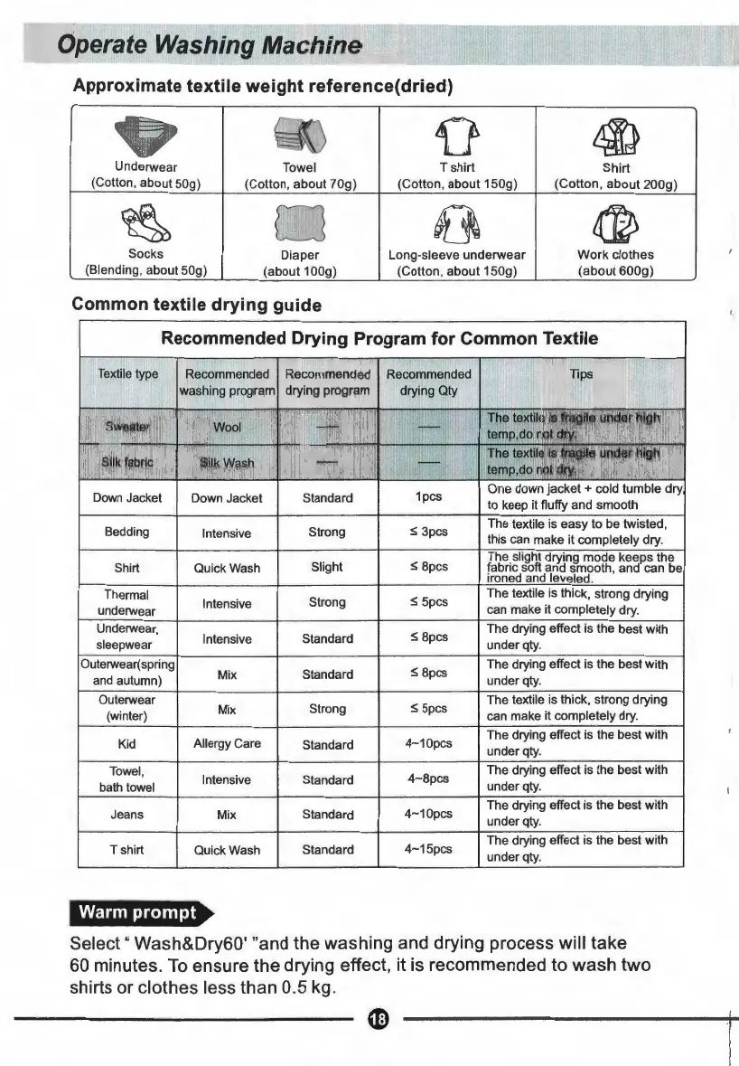 Recommended Drying Program for Common Textile