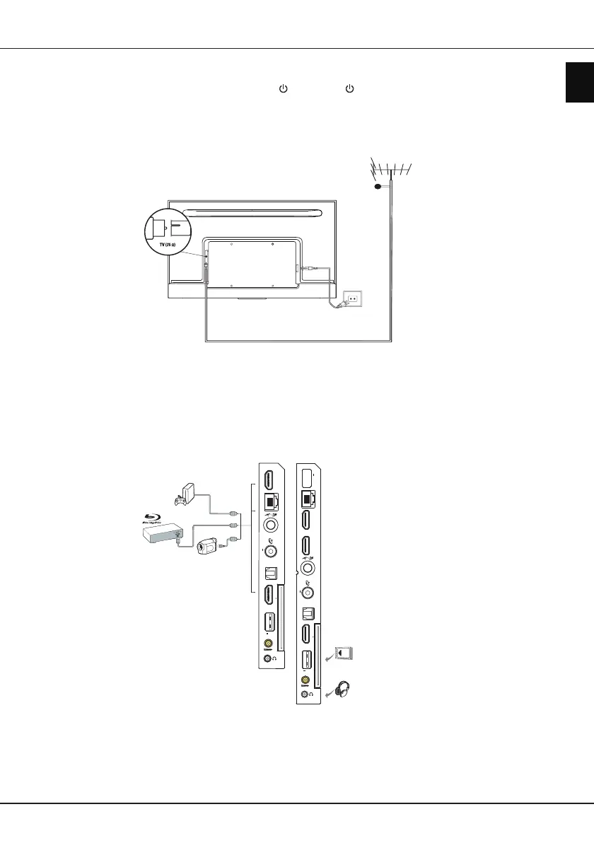 To switch on TV after connecting power cord, press or