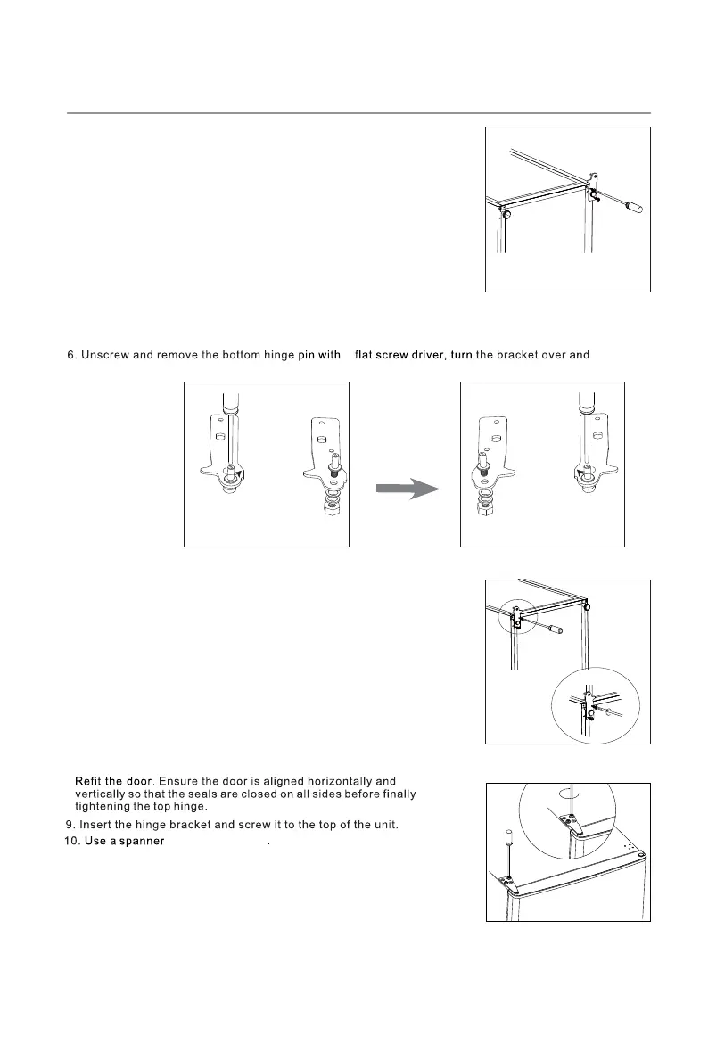 7.Refit the bracket fitting the bottom hinge pin. Replace both