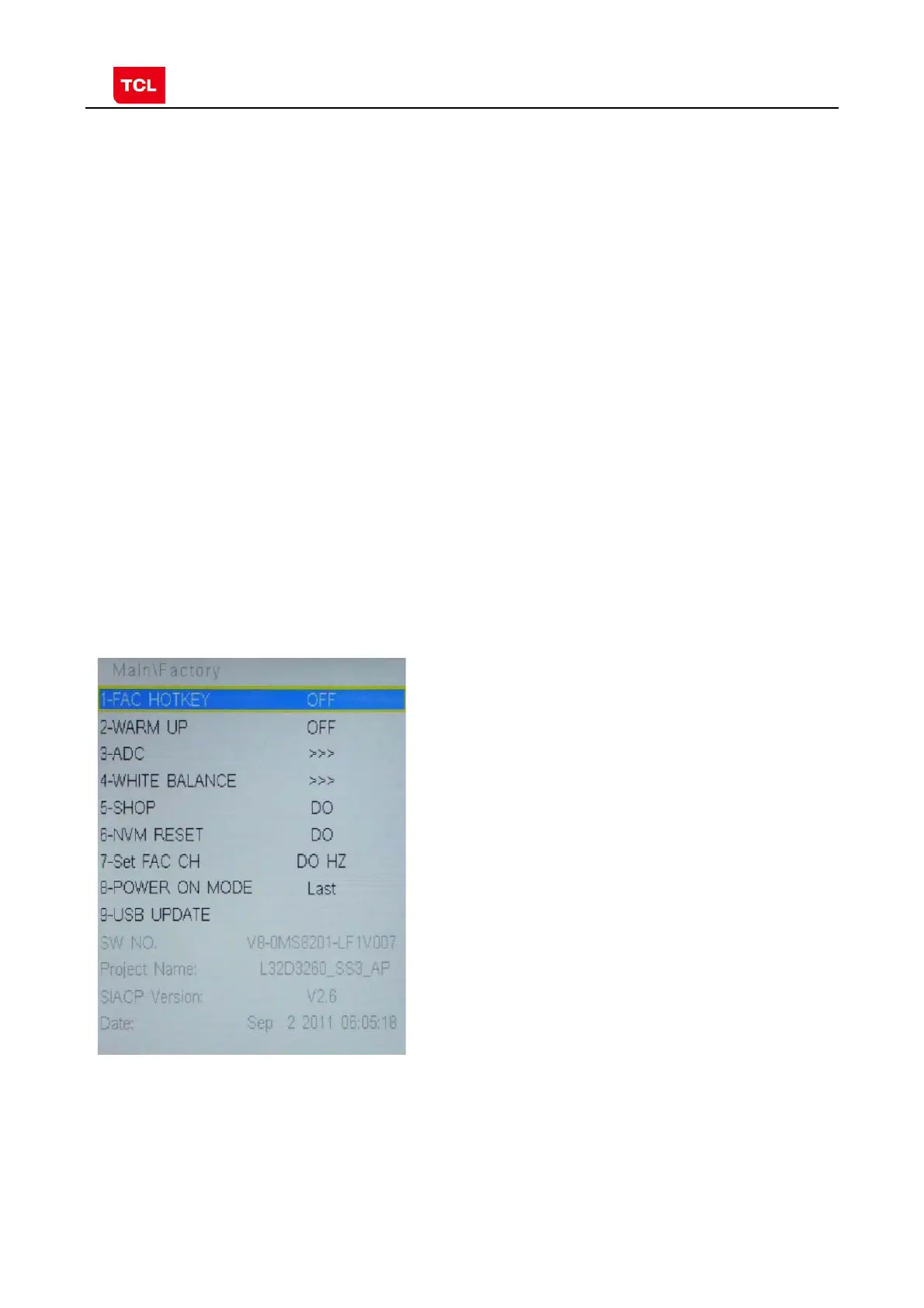 Menu and Hotel Menu. Factory Menu covers all indispensable functions during