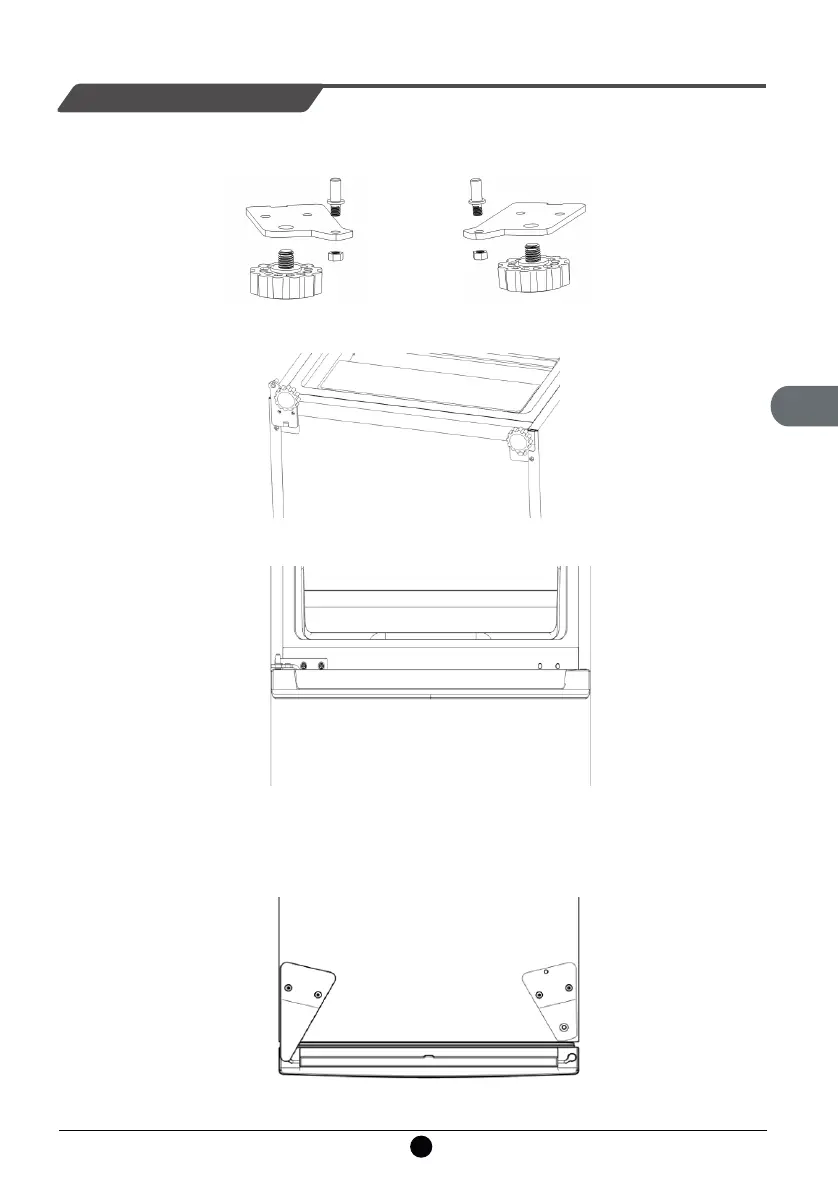 6. Vervang het onderste scharnier met de nivelleringshoek en installeer de onderste deur.
