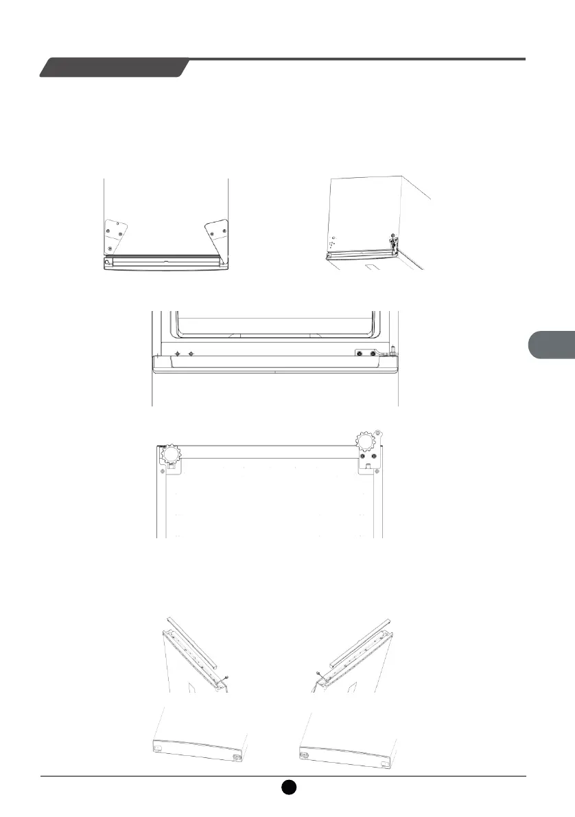 3. Tumbado en el refrigerador y retire la bisagra inferior y el ángulo de nivelación en la parte