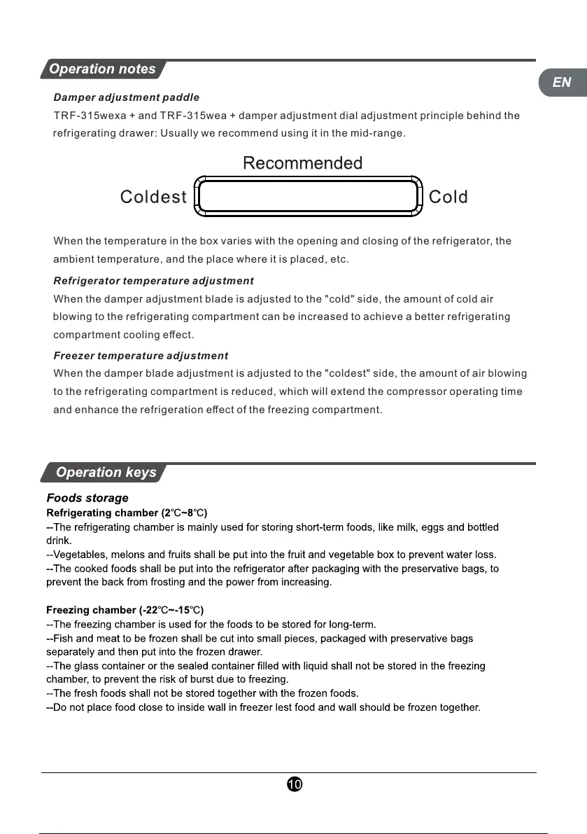 refrigerating drawer: Usually we recommend using it in the mid-range.
