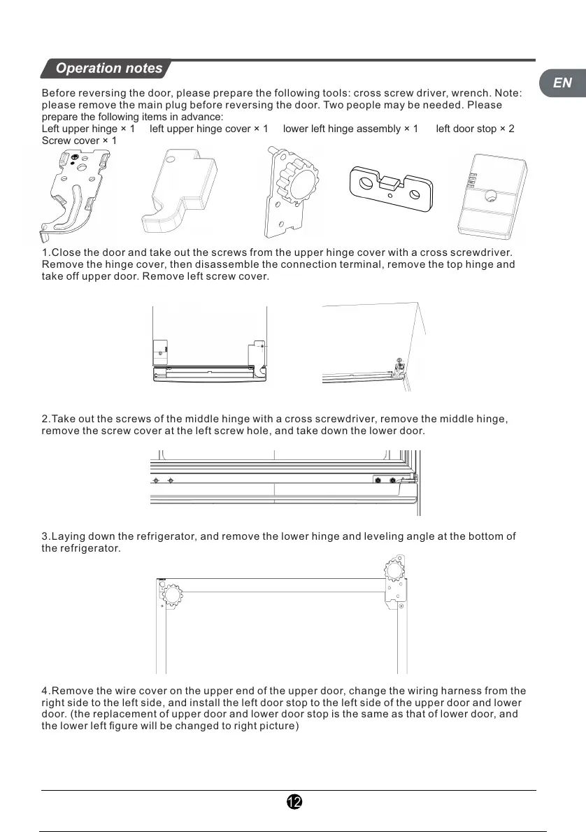 Before reversing the door, please prepare the following tools: cross screw driver, wrench. Note: