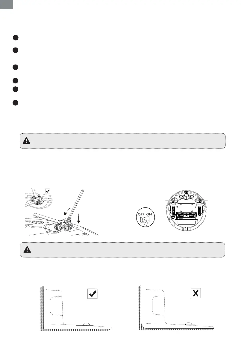 L’aspirapolvere robot può salire su oggetti di altezza inferiore a 0,79 in/20 mm. Rimuovere questi