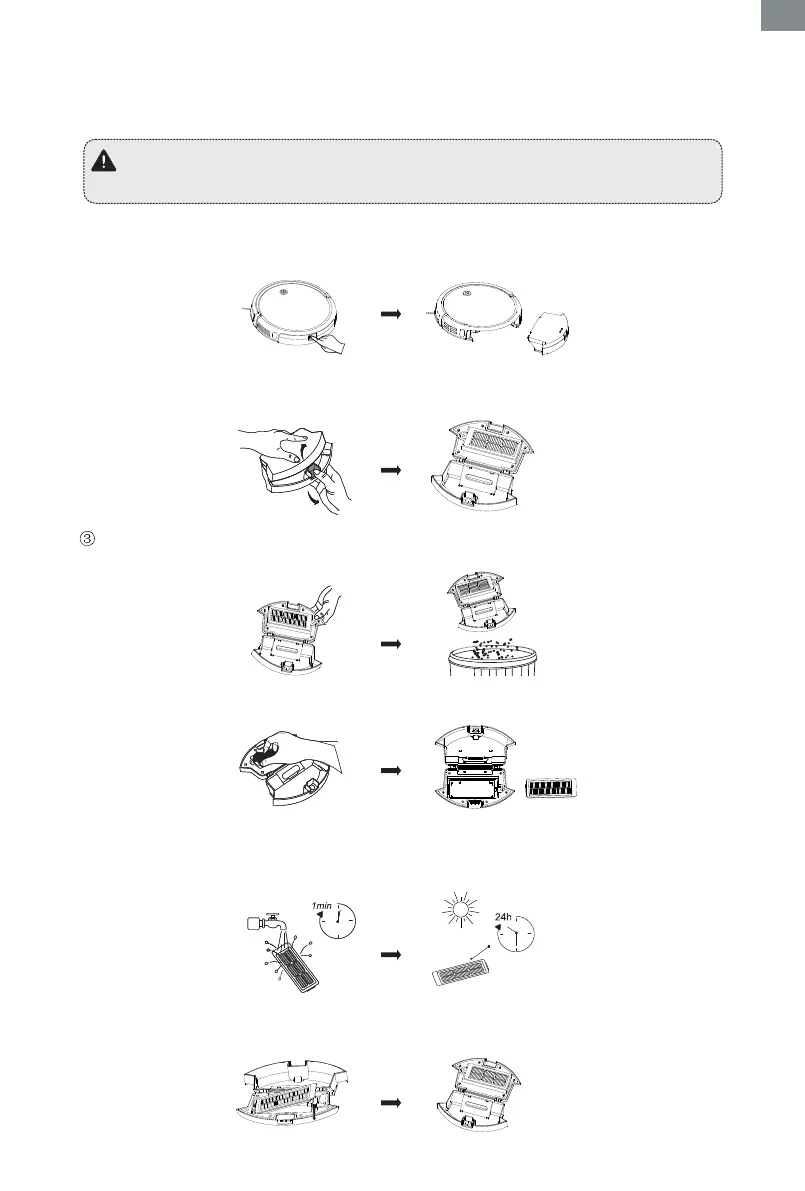 Risciacquare il cestello della polvere e il filtro (non frequentemente, si raccomanda una pulizia mensile),