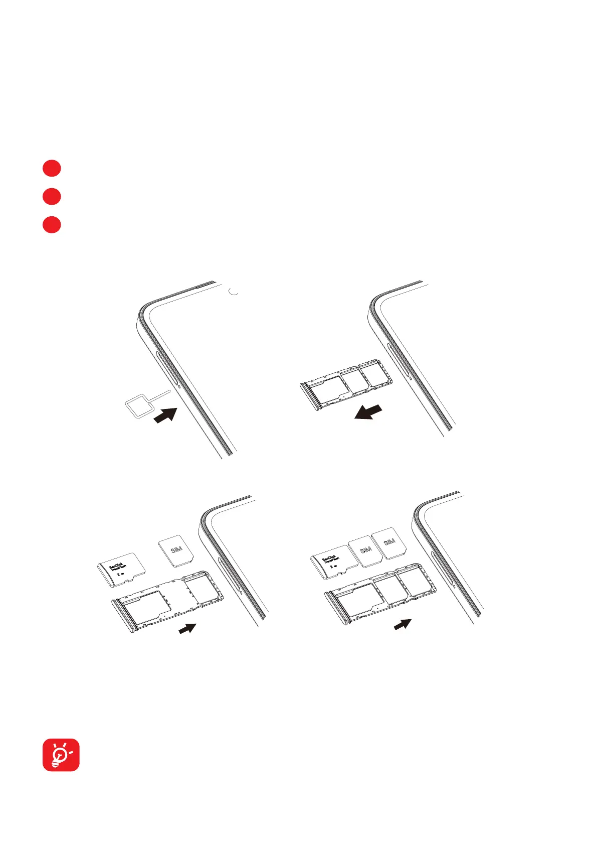 Place the SIM card or microSD card into the tray slot and carefully close the
