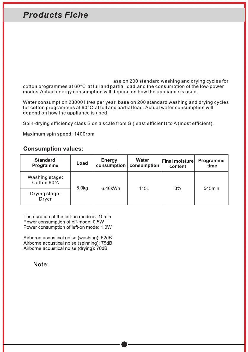 nThe airborne acoustical noise emissions during washing/spining/drying for the