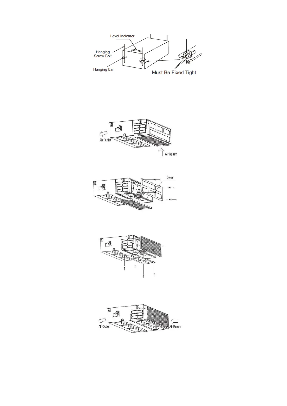 This indoor unit is fitted with downward air return, which can be change to its backward counterpart