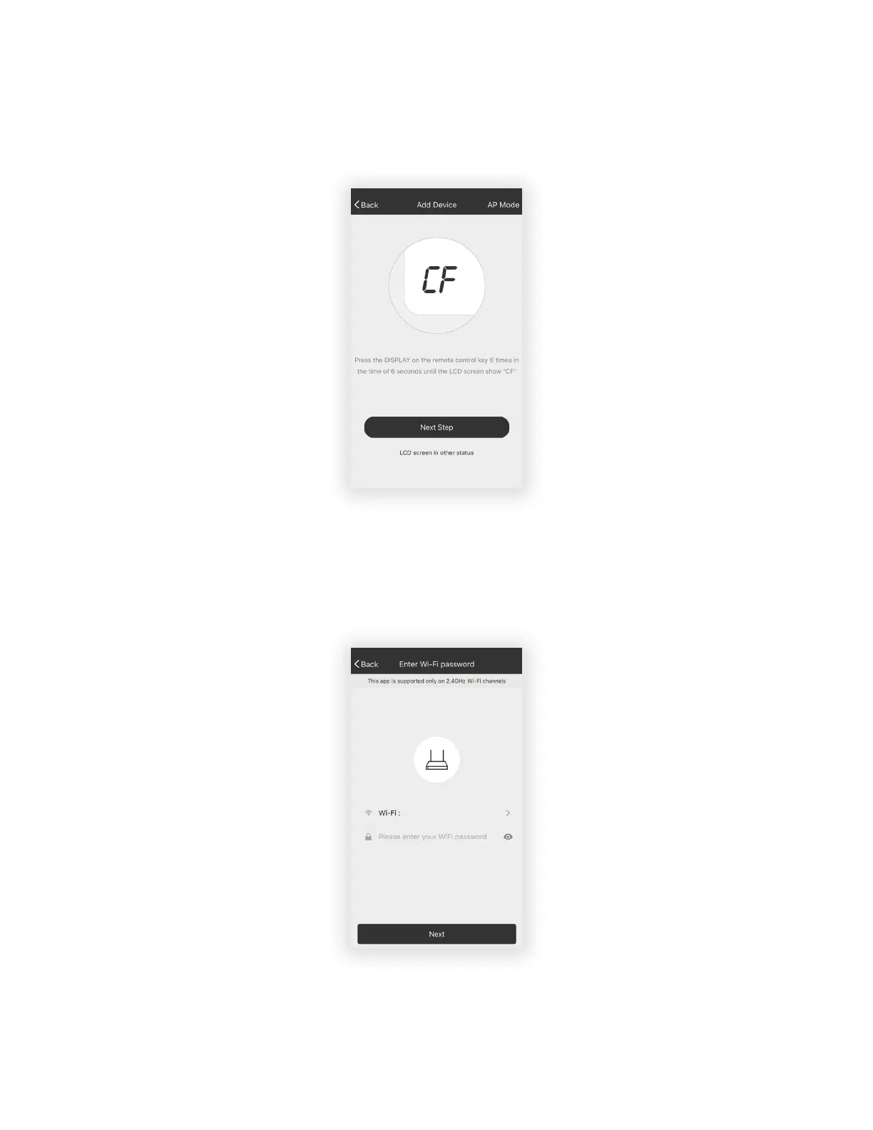 1. The App and AC unit automatically defaults to CF mode upon start up. Follow the prompts