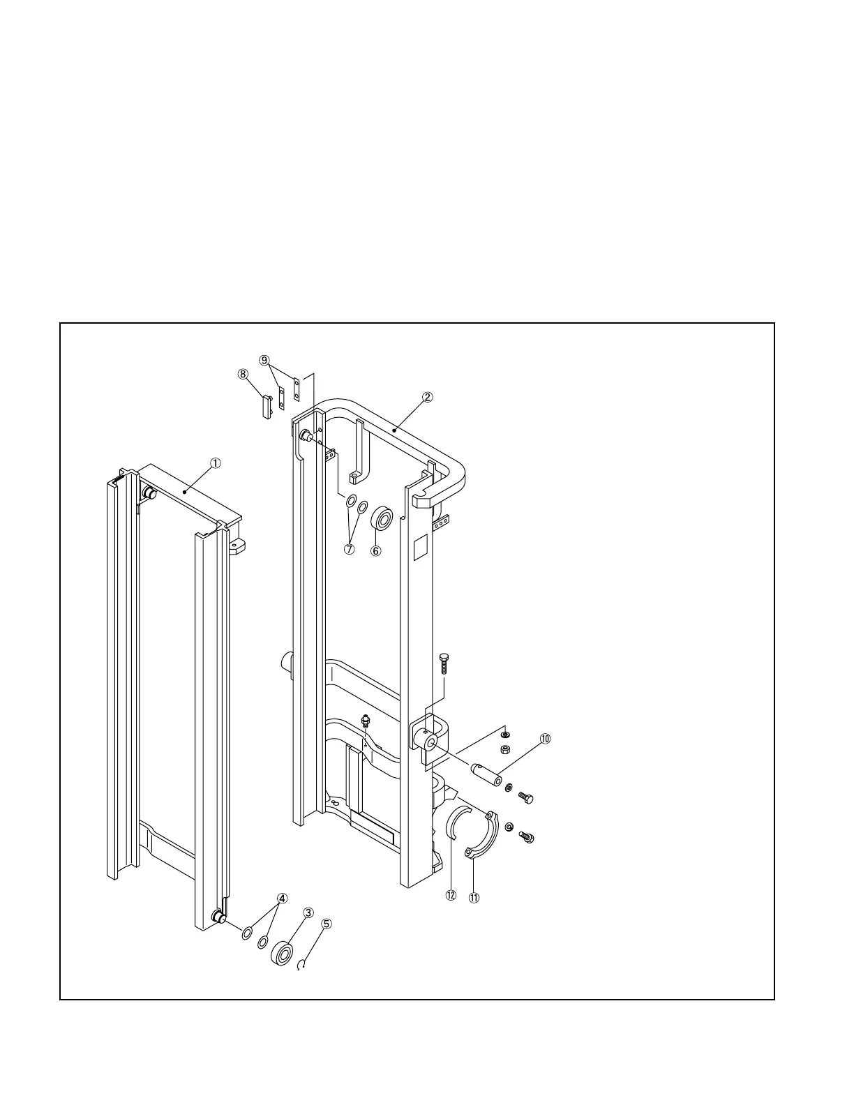 The center of the outer channel is supported by the frame via the tilt cylinder. The mast assembly tilts