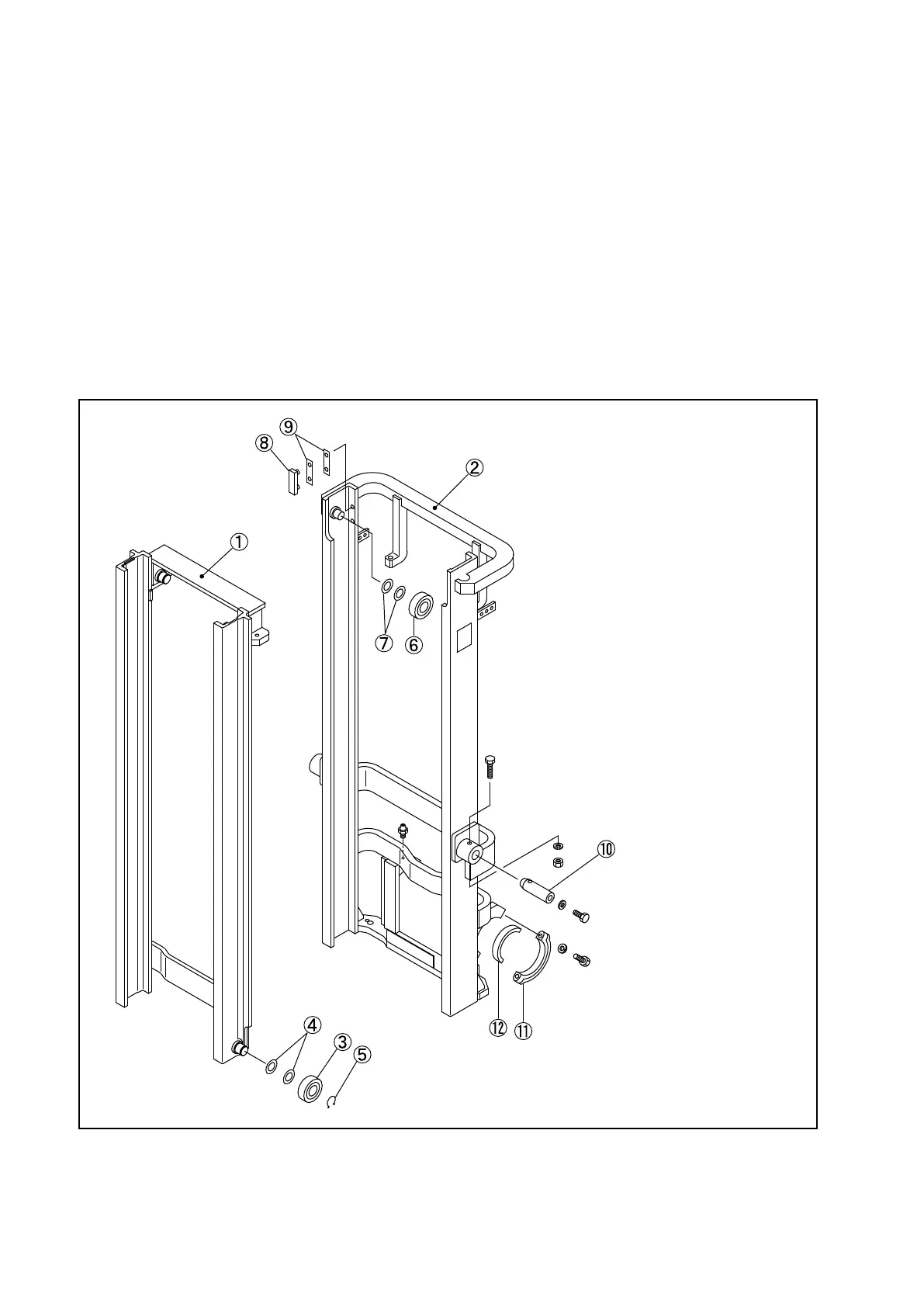 The center of the outer channel is supported by the frame via the tilt cylinders. The mast